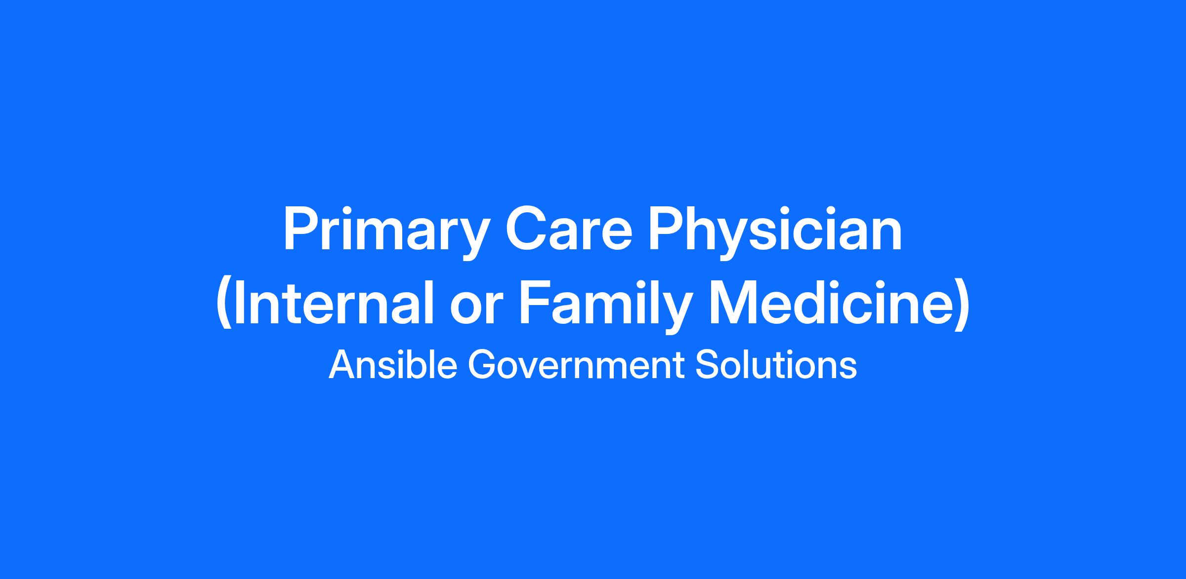 Ansible Government Solutions, LLC (Ansible) is currently recruiting for a Primary Care Physician to provide onsite services to eligible beneficiaries of the Beaumont VA Clinic located at 3420 Plaza Cr, Beaumont, TX 77707. Shift scheduling is generally Mon-Fri, 8:00 am-4:30 pm with no call or holidays. The Physician may be requested to work up to four (4) Saturdays per year. Full-time and Locum Tenens positions with generous compensation packages are available.