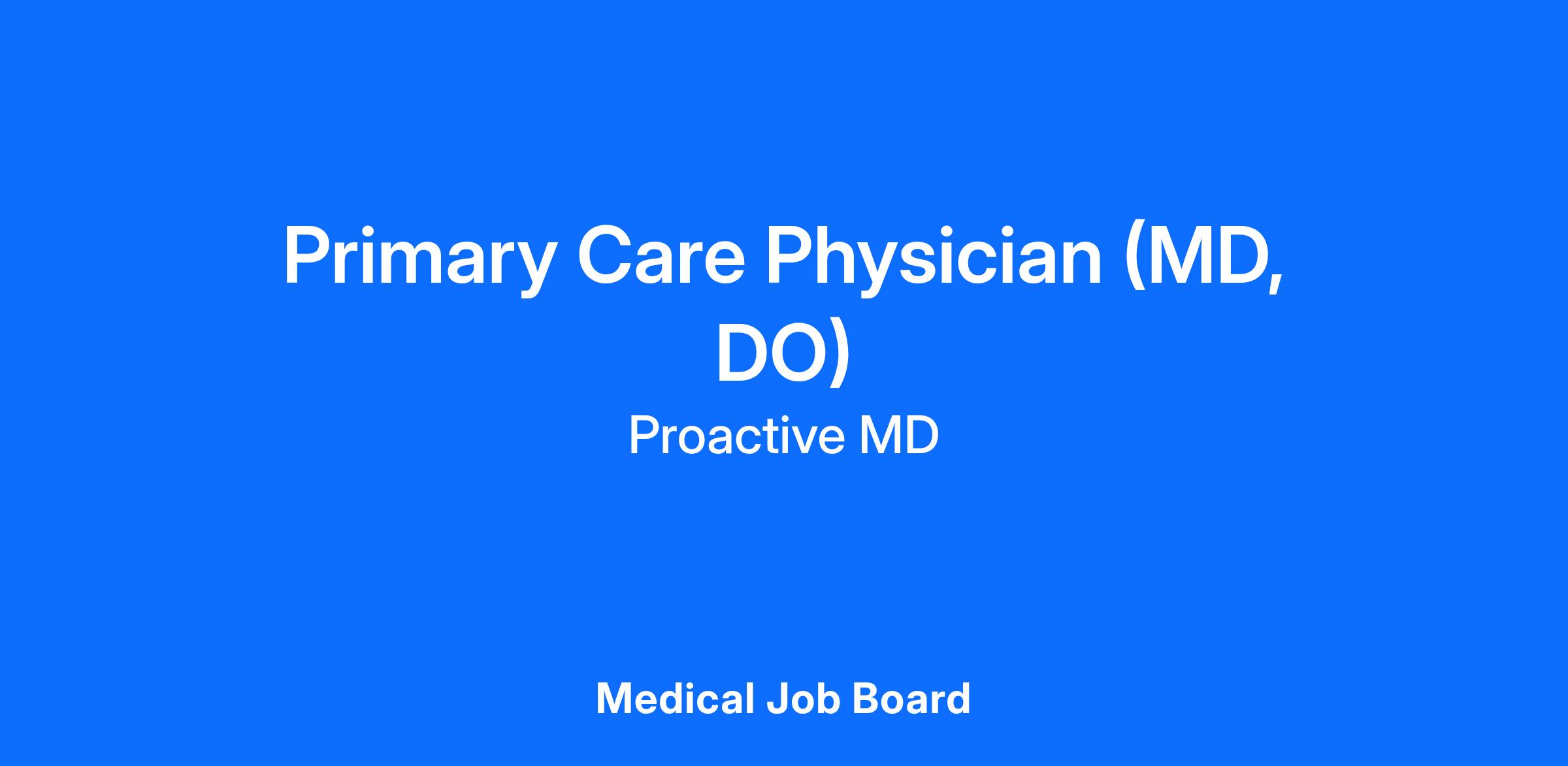 Proactive MD is firmly committed to creating a diverse workplace and is proud to provide equal employment opportunities to all employees and applicants for employment without regard to race, color, religion, sex, gender identity and/or expression, sexual orientation, ethnicity, national origin, age, disability, genetics, marital status, amnesty status, or veteran status applicable to state and federal laws.