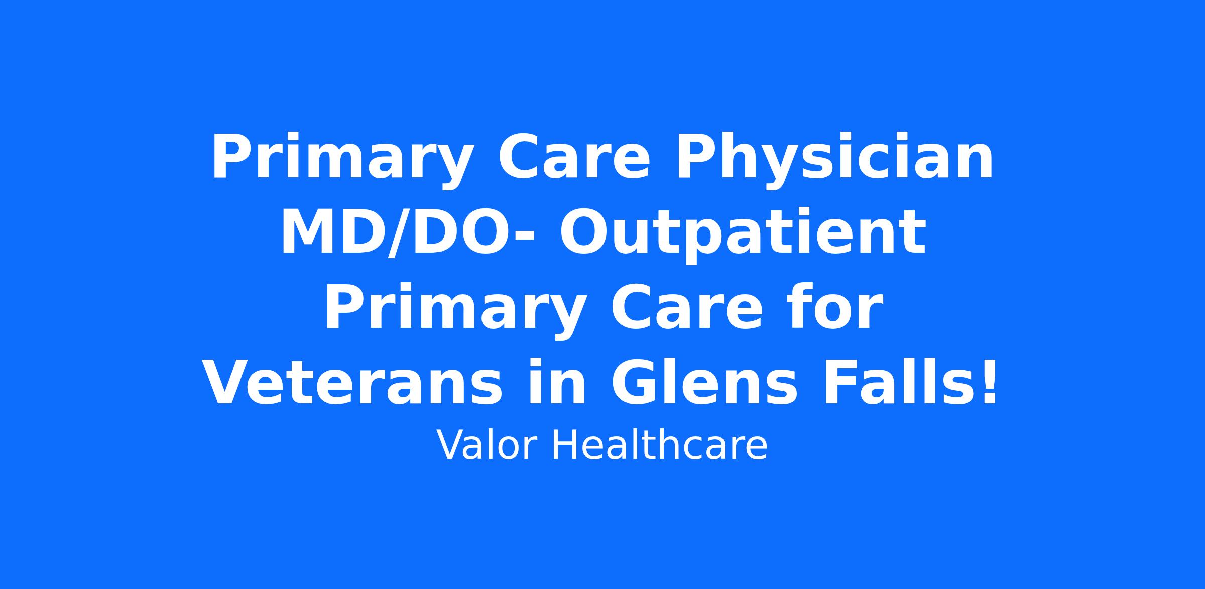 Valor Healthcare is looking for a passionate Primary Care Physician to join our team at the Community Based Outpatient Clinic (CBOC) in Glens Falls.