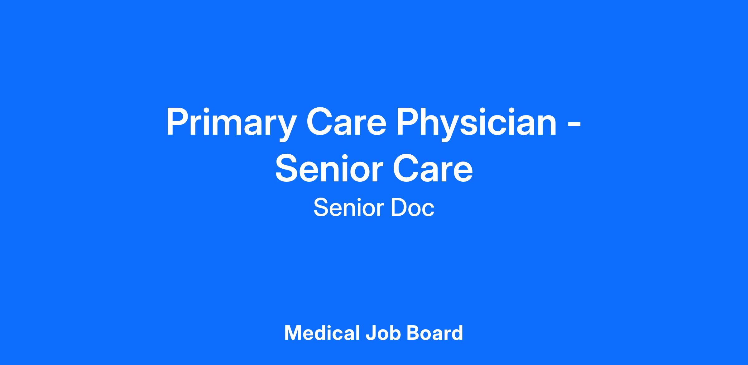 Apply today to become a Primary Care Physician with Senior Doc Medical Group.