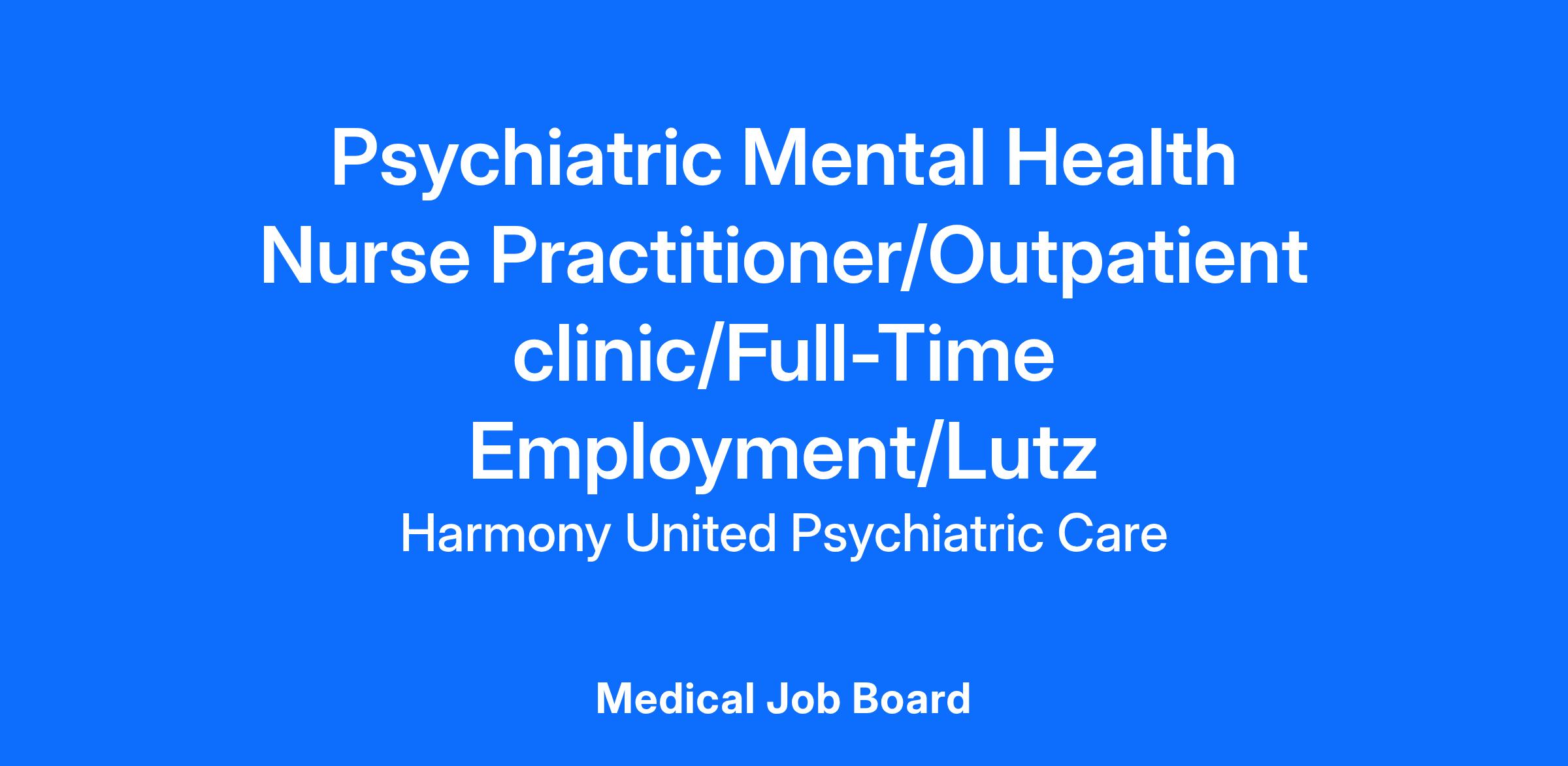 Company: Harmony United Psychiatric CareJob Title: Psychiatric Mental Health Nurse Practitioner/Outpatient clinic/Full-Time Employment