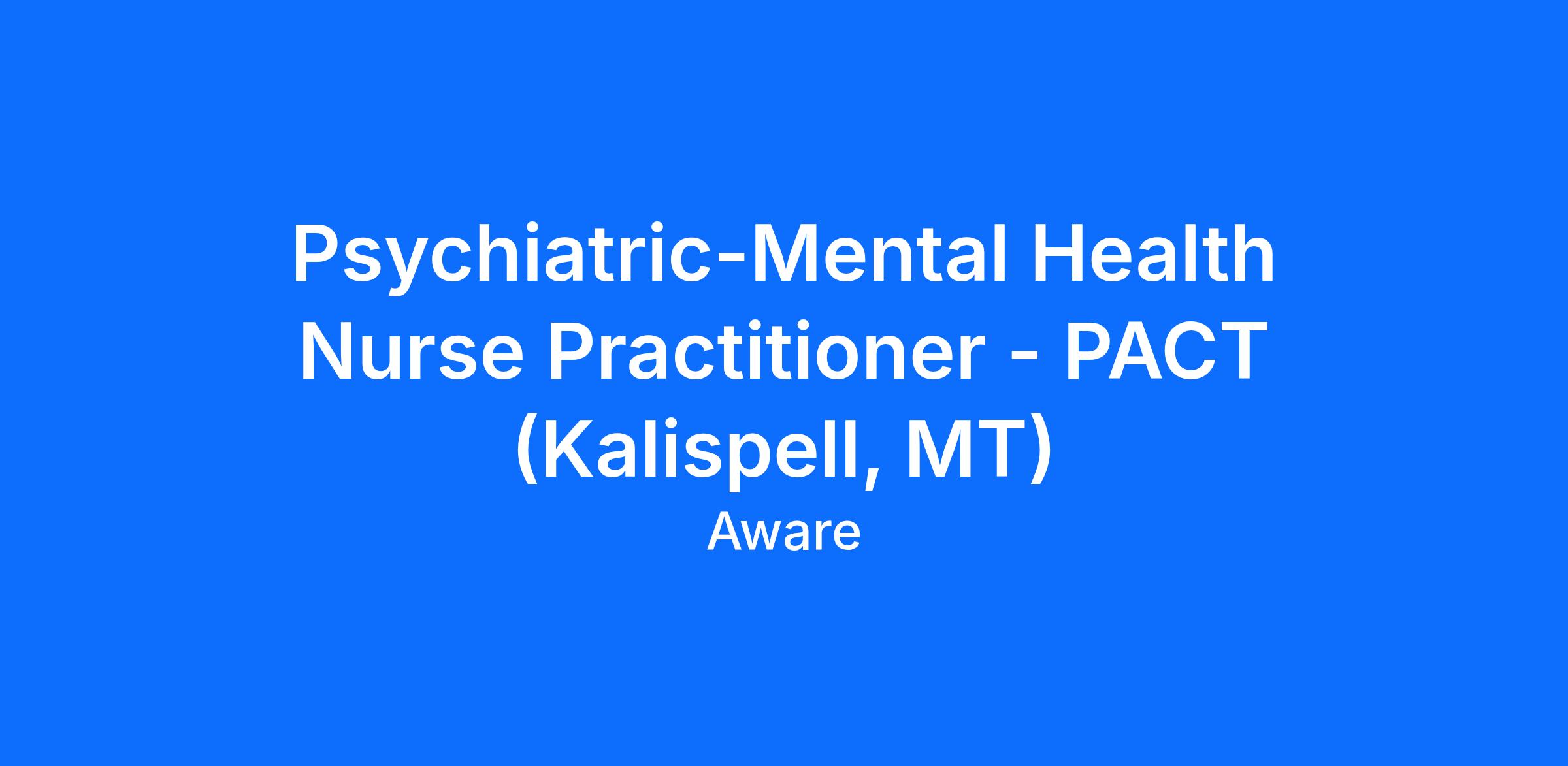 AWARE's Program of Assertive Community Treatment (PACT) Psychiatric-Mental Health Nurse Practitioner (PMHNP) is responsible for providing leadership and guidance to PACT program staff concerning patient care. This includes providing direct psychiatric care to patients, as well as consultation and guidance to other members of the team. Duties will include, but are not limited to, performing psychiatric evaluations, contributing to team development of patient care plans, obtaining indicated diagnostic tests, prescribing medications and treatments, and providing ongoing psychiatric care. The PMHNP may also carry a small caseload of patients not enrolled in PACT services or help with cross-coverage of clinical needs.