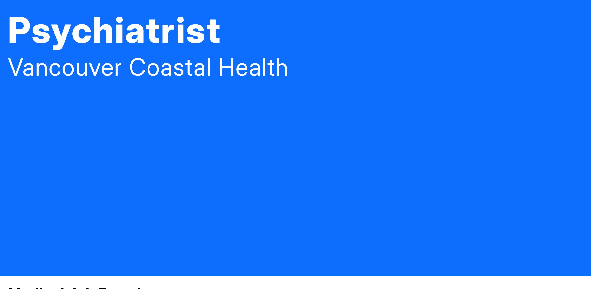 Come work as a Psychiatrist with Vancouver Coastal Health (VCH)!