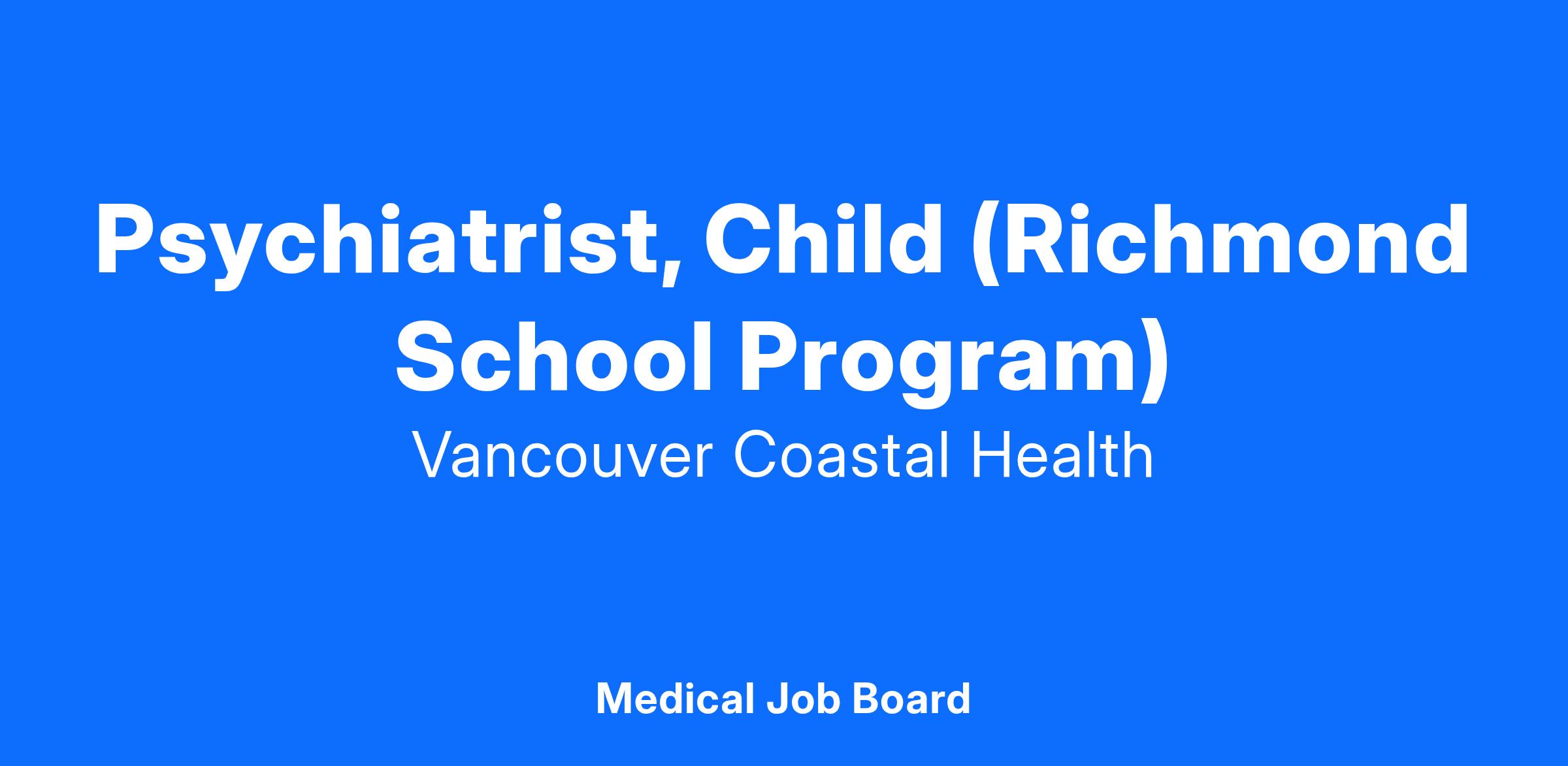 Come work as a Child Psychiatrist (Richmond School Program) with Vancouver Coastal Health (VCH)!