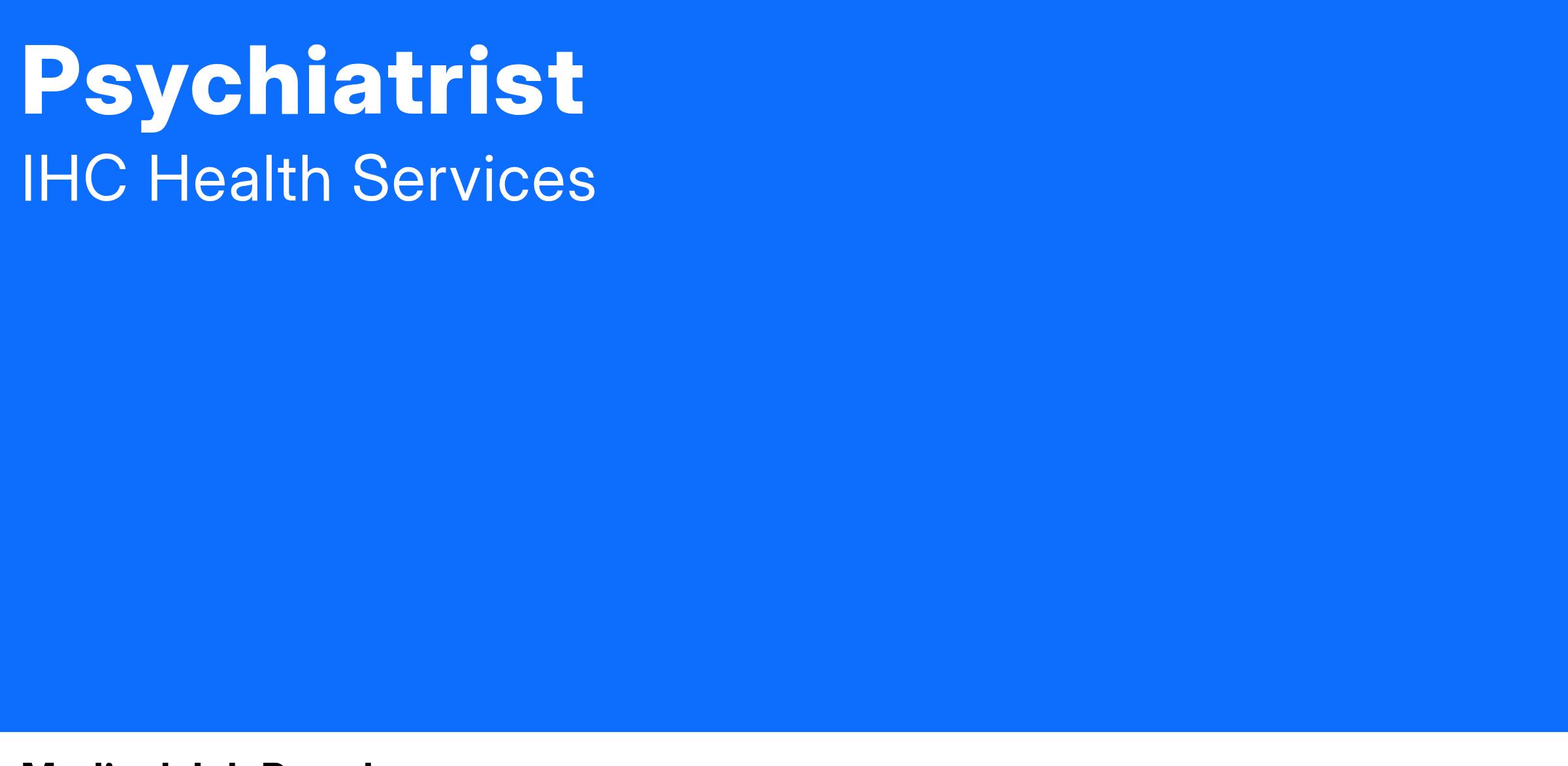 As a Psychiatry Physician you will work with a team of healthcare professionals committed to providing quality are and excellent patient experiences.
