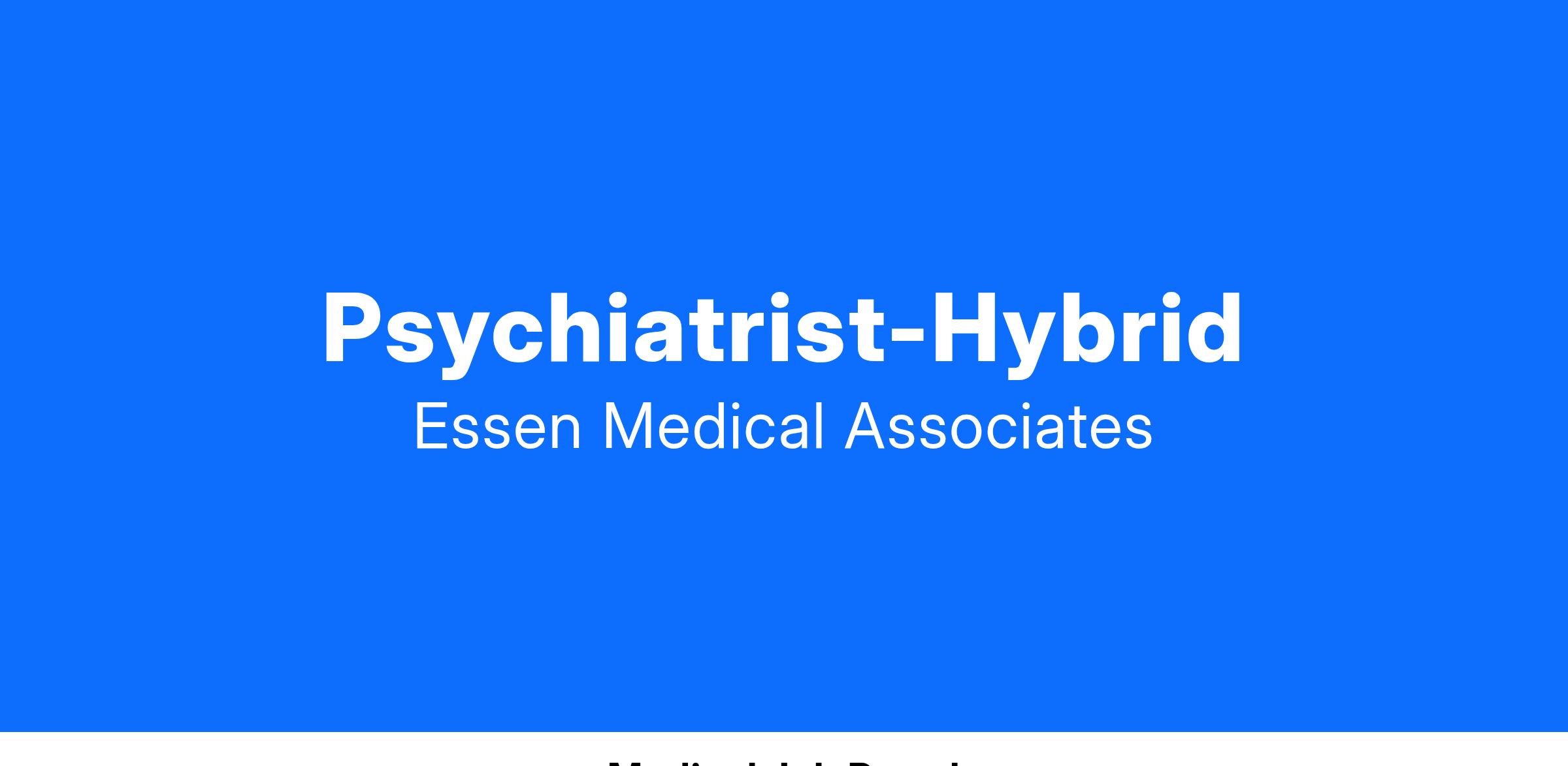Job Summary: Department of Behavioral Health at Essen has immediate opening for part- time and full time Clinical Psychologist Responsible for providing direct patient care in outpatient as well as Nursing home facilities. Opportunity to collaborate with multidisciplinary team at Essen. All sites have strong participation with Essen Health home care coordination, with potential innovative pilot projects. The Clinical Psychologist will be responsible to works with Behavioral Health Team with and offers compassionate, patient centered, evidence-based psychiatric care.