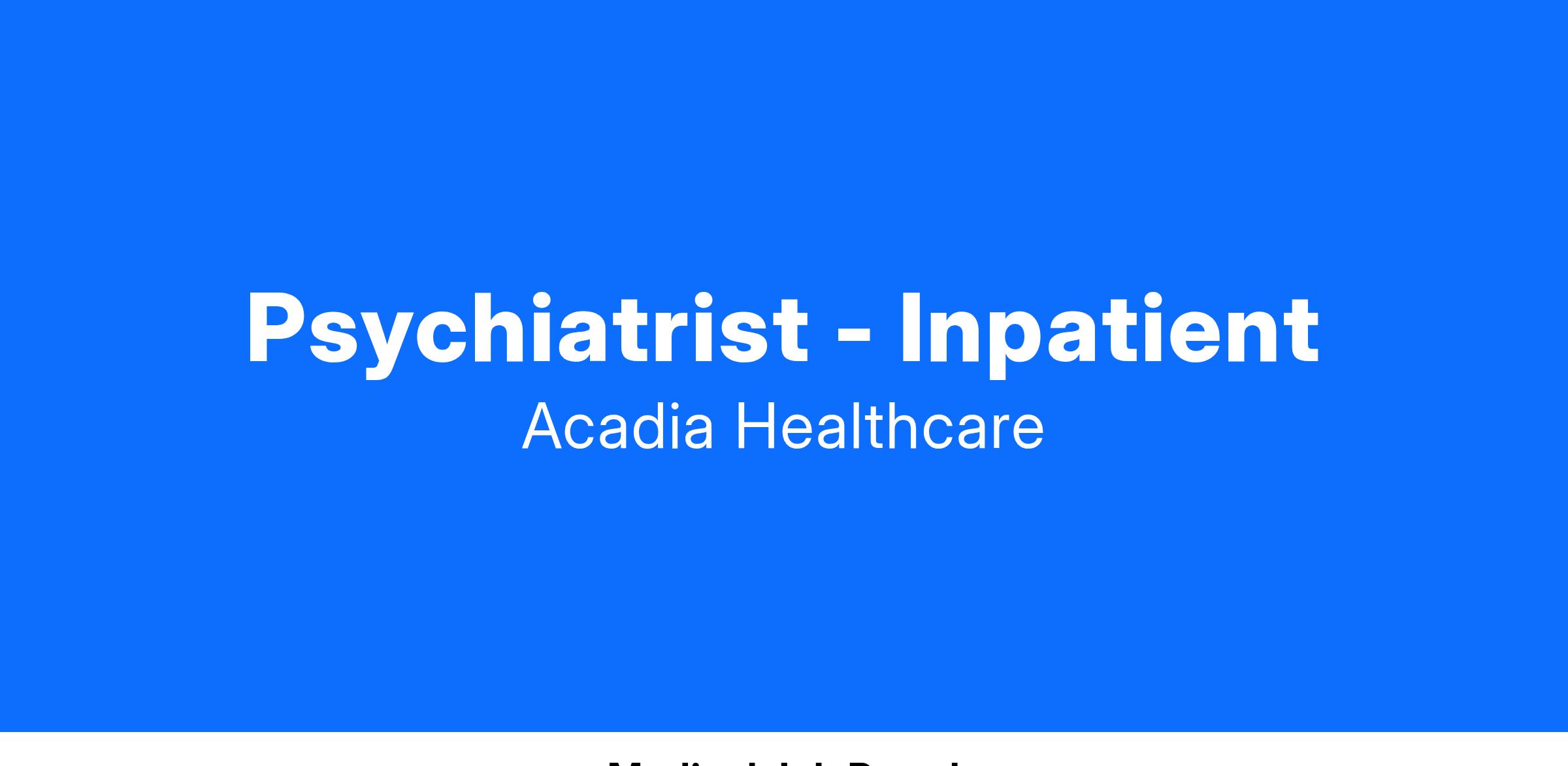 We are currently seeking to add a Full-Time, Inpatient Psychiatrist to support our patients receiving specialized psychiatric care.