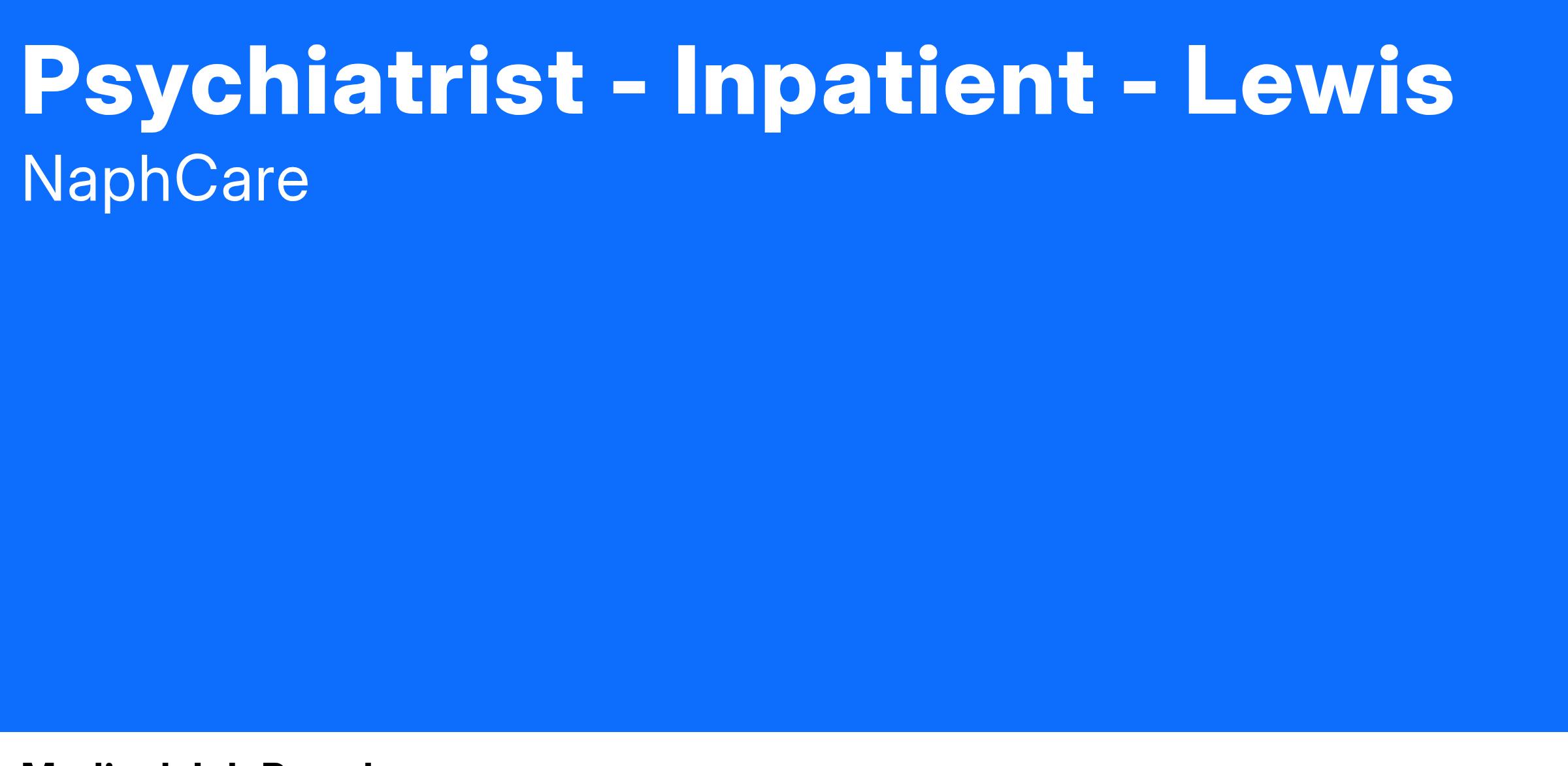 NaphCare is hiring a Psychiatrist just like you to join our team at the ASPC - Lewis located in Buckeye, Arizona.
