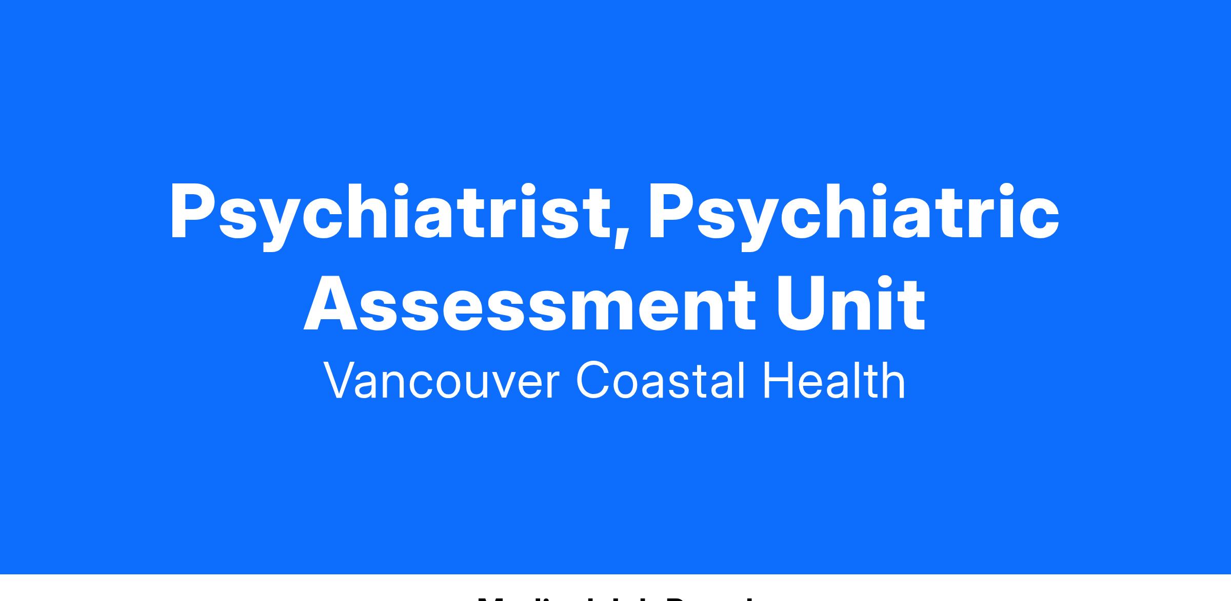 Come work as a Psychiatrist with Vancouver Coastal Health (VCH)!