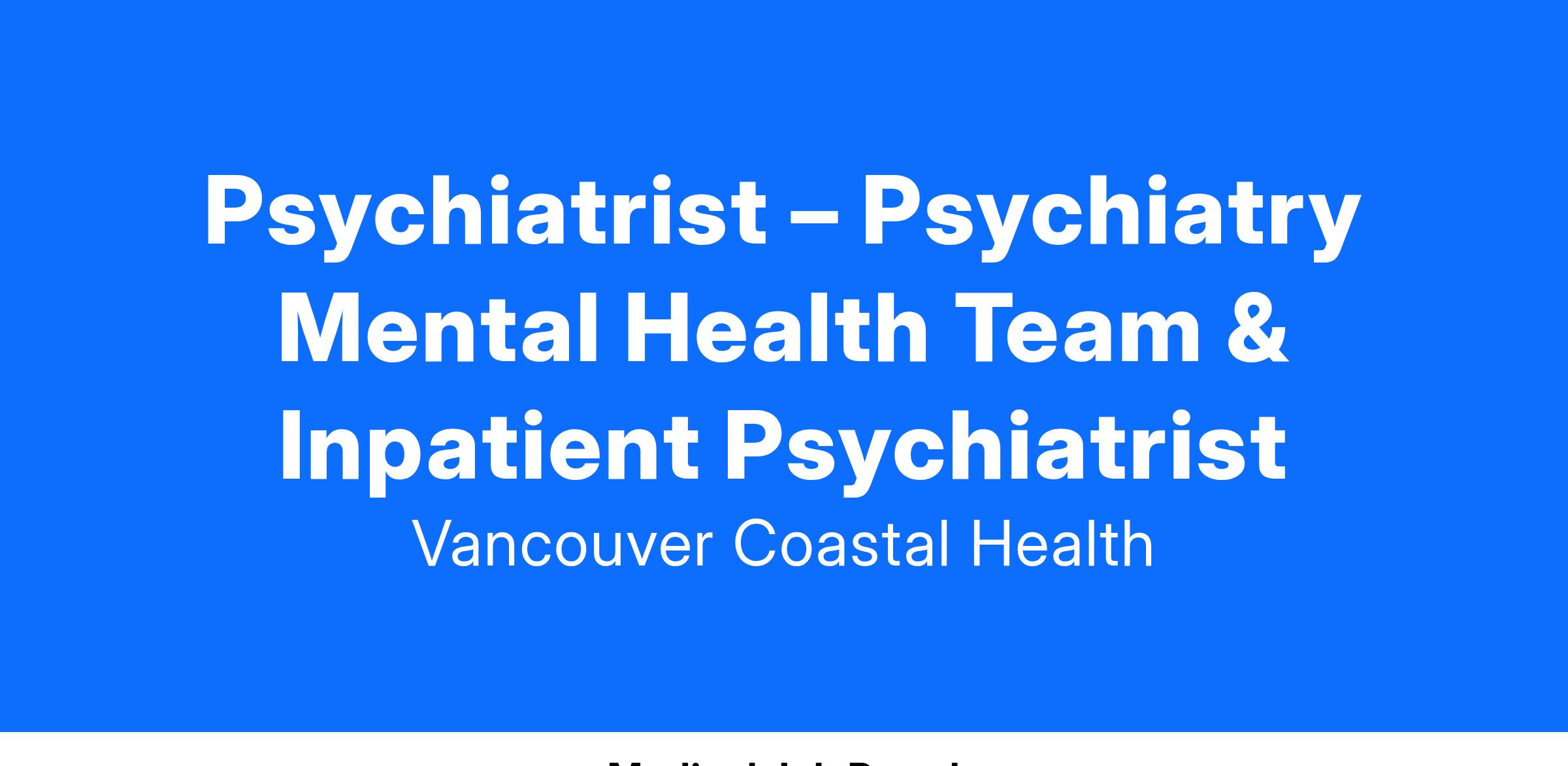 Come work as a Psychiatrist with Vancouver Coastal Health (VCH)!