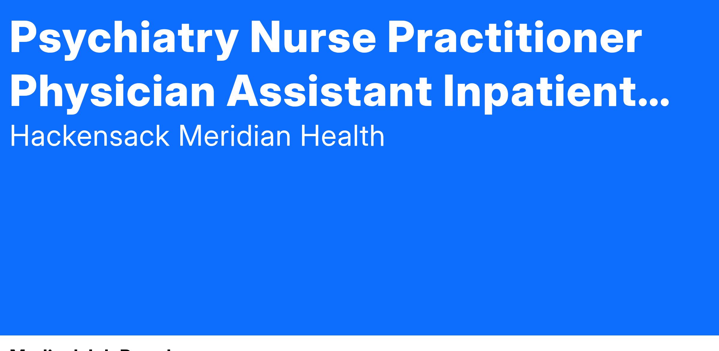 The Psychiatric Advanced Practice Nurse or Physician Assistant performs the role utilizing the patient-centered coordinated care model demonstrated through the following competencies: leadership, direct clinical practice, consultation/collaboration, coaching/guiding, research, and ethical decision making. This is inpatient for consultation liaison, on call requirement.