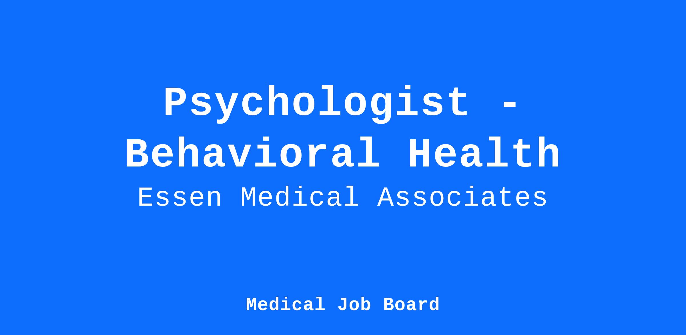 Job Summary: Department of Behavioral Health at Essen has immediate opening for part- time and full time Clinical Psychologist Responsible for providing direct patient care in outpatient as well as Nursing home facilities. Opportunity to collaborate with multidisciplinary team at Essen. All sites have strong participation with Essen Health home care coordination, with potential innovative pilot projects. The Clinical Psychologist will be responsible to works with Behavioral Health Team with and offers compassionate, patient centered, evidence-based psychiatric care.