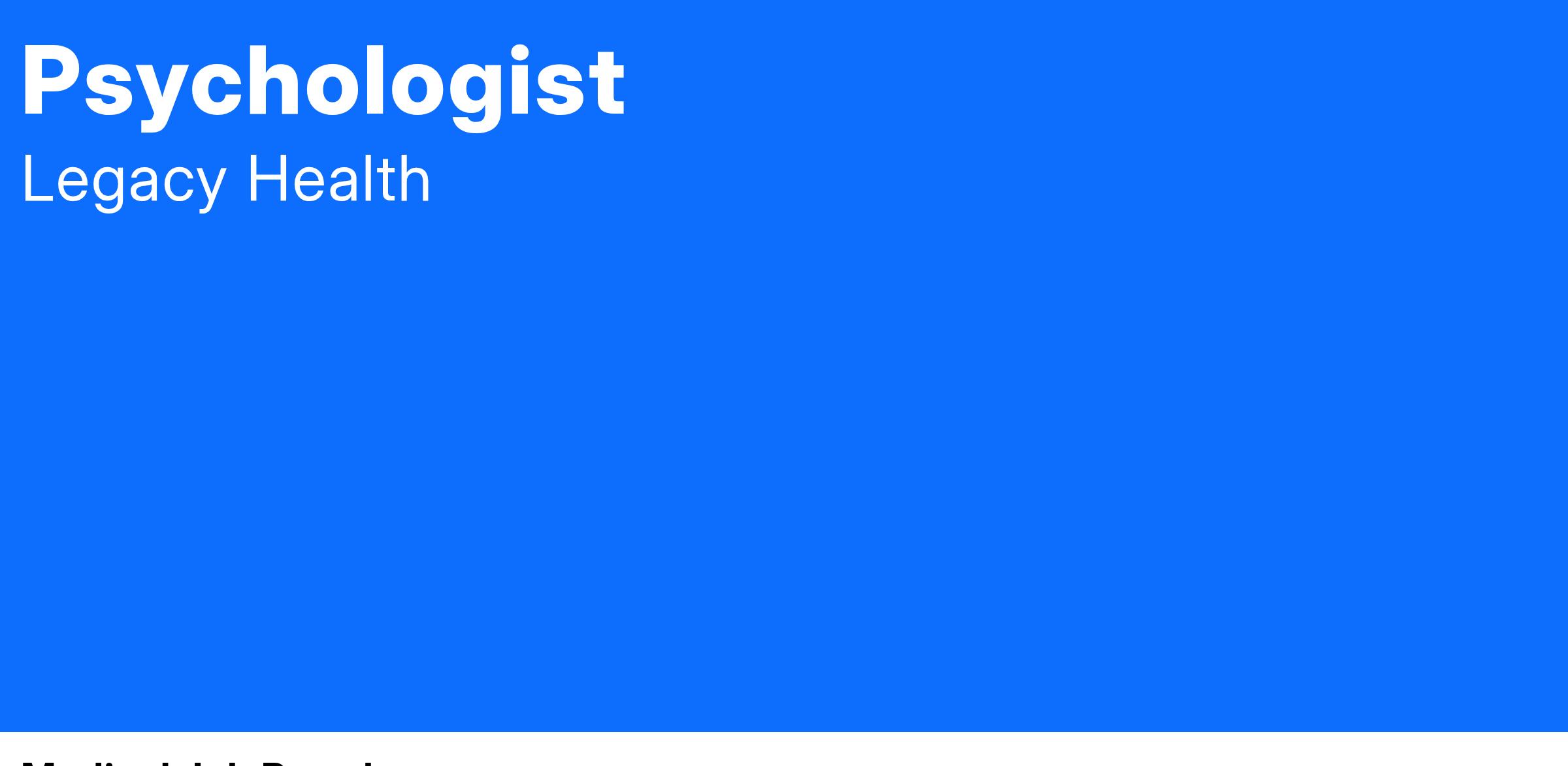 This Psychologist position is a behavioral health provider who works in a consultative role, providing behavioral health interventions to pediatric patients and their families within specialty outpatient clinics within Randall Children’s Hospital supporting infants, children, adolescents, and their families.