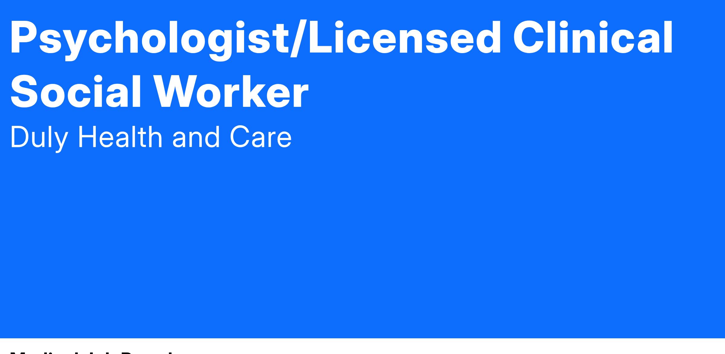 The ideal candidate will be experienced in delivering behavioral health services to children, adolescents, and their families. Will work in a collaborative setting with access to other providers. New grads are encouraged to apply!