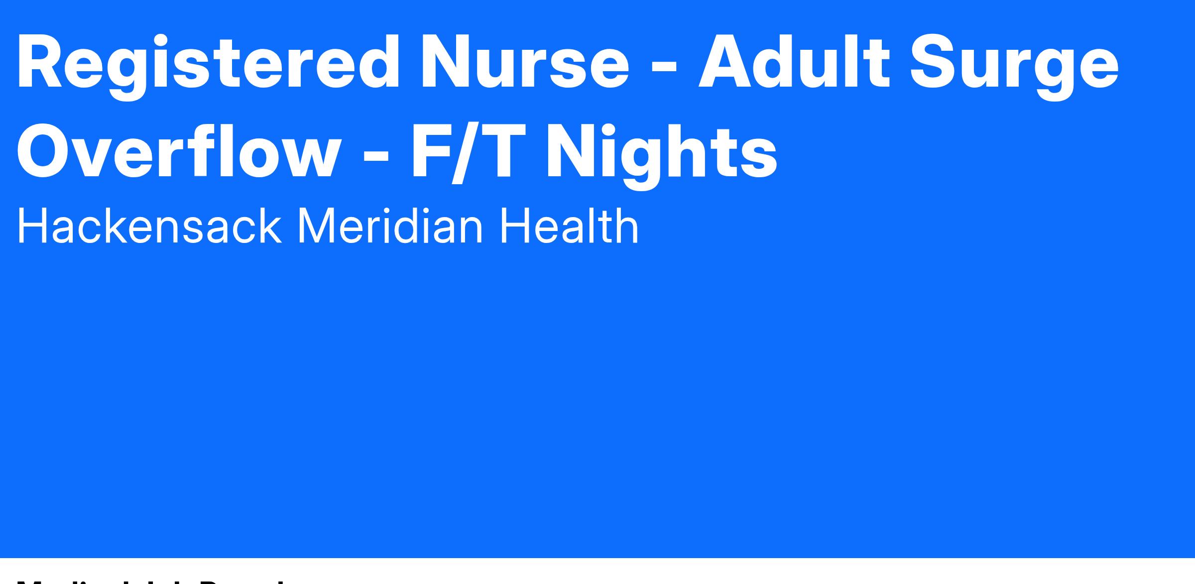 Our team members are the heart of what makes us better. At Hackensack Meridian Health we help our patients live better, healthier lives — and we help one another to succeed. With a culture rooted in connection and collaboration, our employees are team members. Here, competitive benefits are just the beginning. It’s also about how we support one another and how we show up for our community. Together, we keep getting better - advancing our mission to transform healthcare and serve as a leader of positive change.