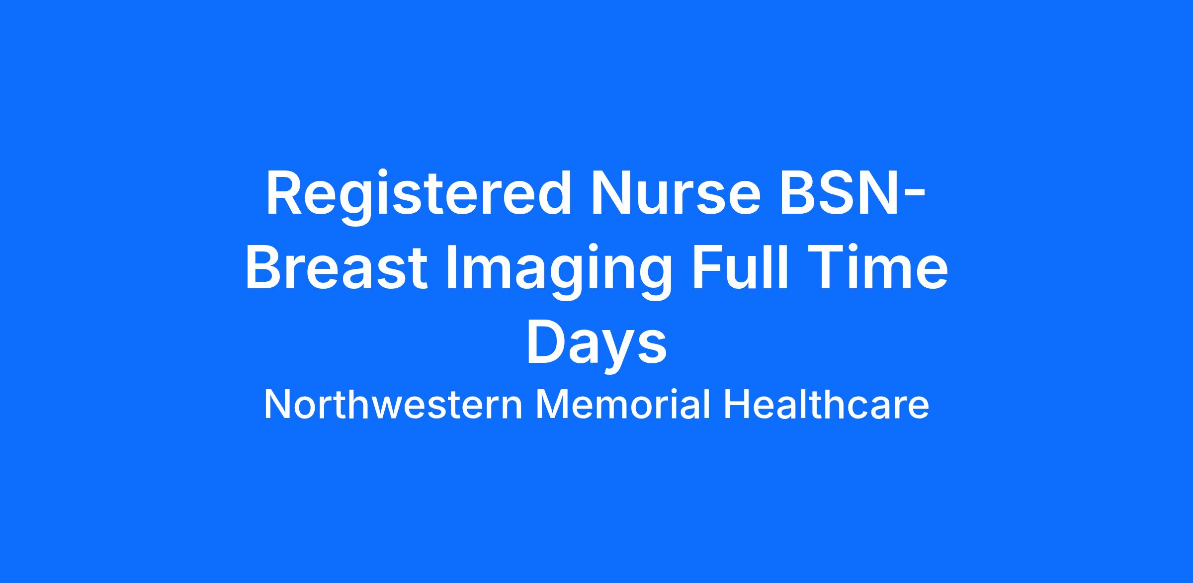 **This is a full time position at 40 hours per week located at Northwestern Medicine Catherine Gratz Griffin Lake Forest Hospital. This position supports the Breast Imaging department and the schedule is Monday to Friday 7am-330pm; no weekends, holidays or call. Prior experience in Breast Imaging, Radiology/Procedural Nursing, or Oncology strongly preferred. **