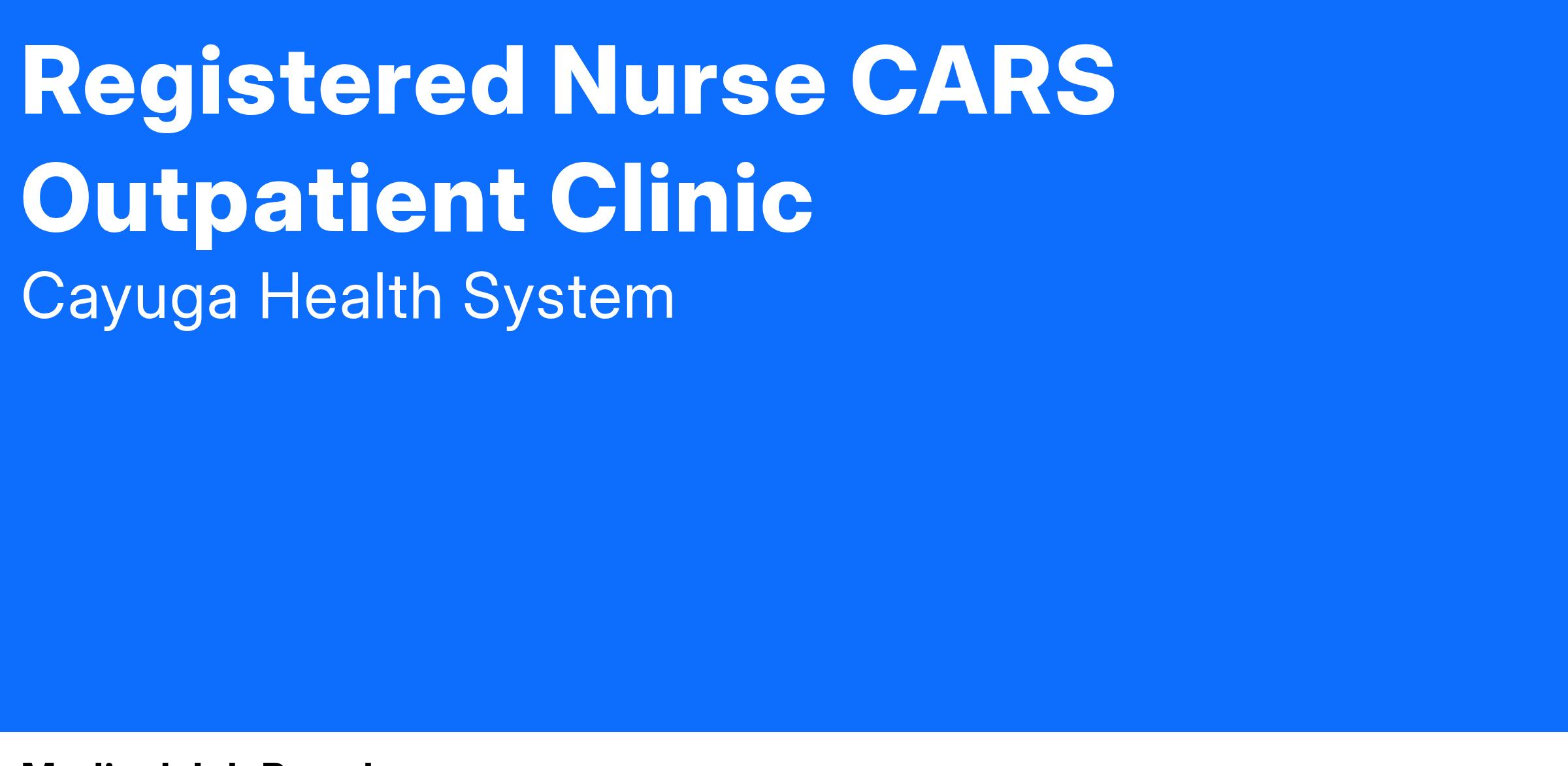 Cayuga Health and its affiliates are the region's leading healthcare system and most trusted providers of integrated health services, empowering our people in our mission to equitably improve the well-being of the communities we serve. Our commitment to providing extraordinary healthcare begins with our team of extraordinary professionals who are continuously discovering clinical innovations and enhancing access to the most up-to-date facilities, equipment, technologies, and research protocols. Cayuga Health's commitment to our employees includes competitive compensation, comprehensive employee benefits programs, and the opportunity to explore and build a career in healthcare through our many professional development programs.