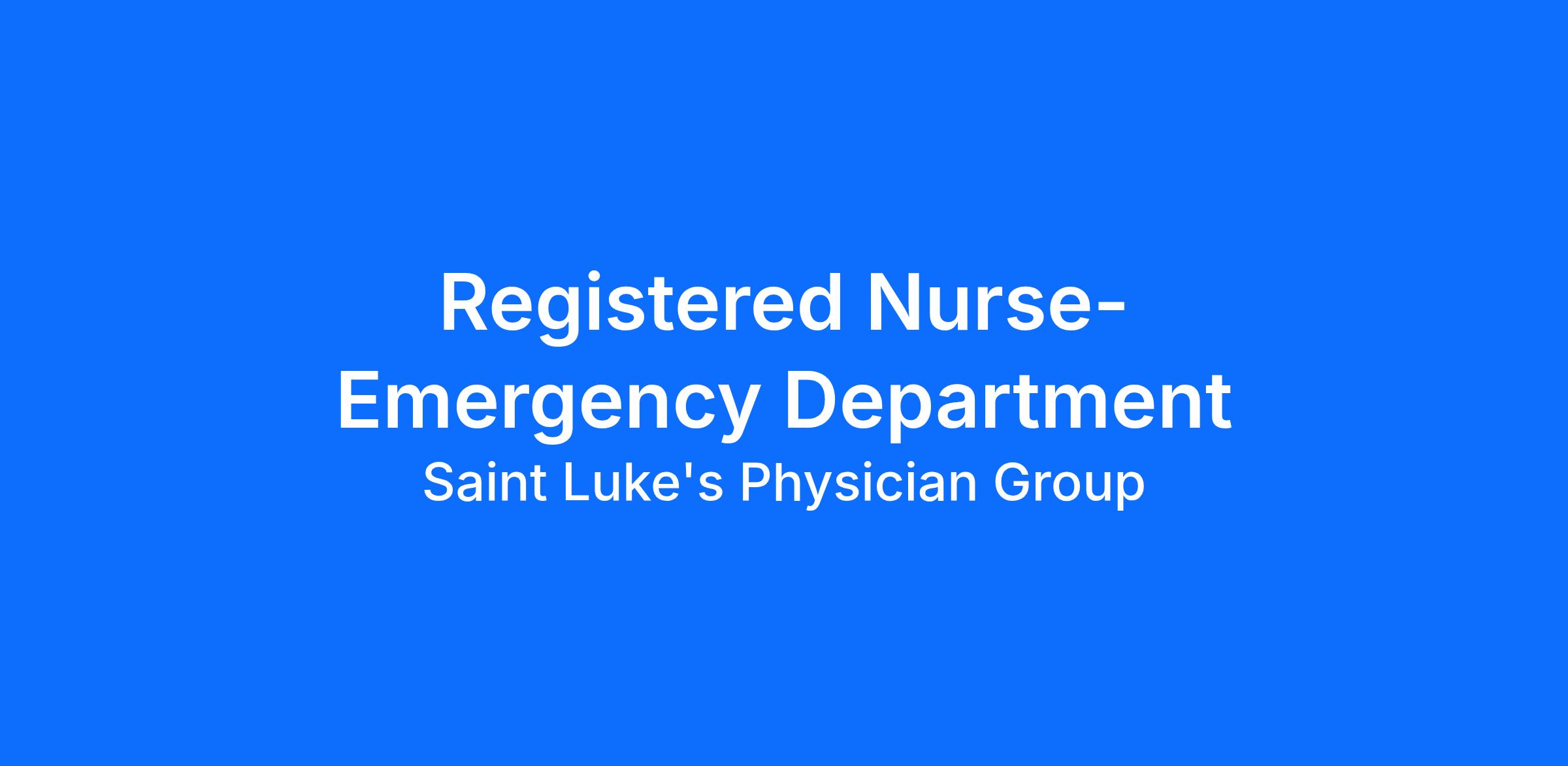 Less than 1 yearBasic Life Support - American Heart Association or Red Cross, Registered Nurse - VariousAssociate DegreeThe best place to get care. The best place to give care. Saint Luke’s 12,000 employees strive toward that vision every day. Our employees are proud to work for the only faith-based, nonprofit, locally owned health system in Kansas City. Joining Saint Luke’s means joining a team of exceptional professionals who strive for excellence in patient care. Do the best work of your career within a highly diverse and inclusive workspace where all voices matter.