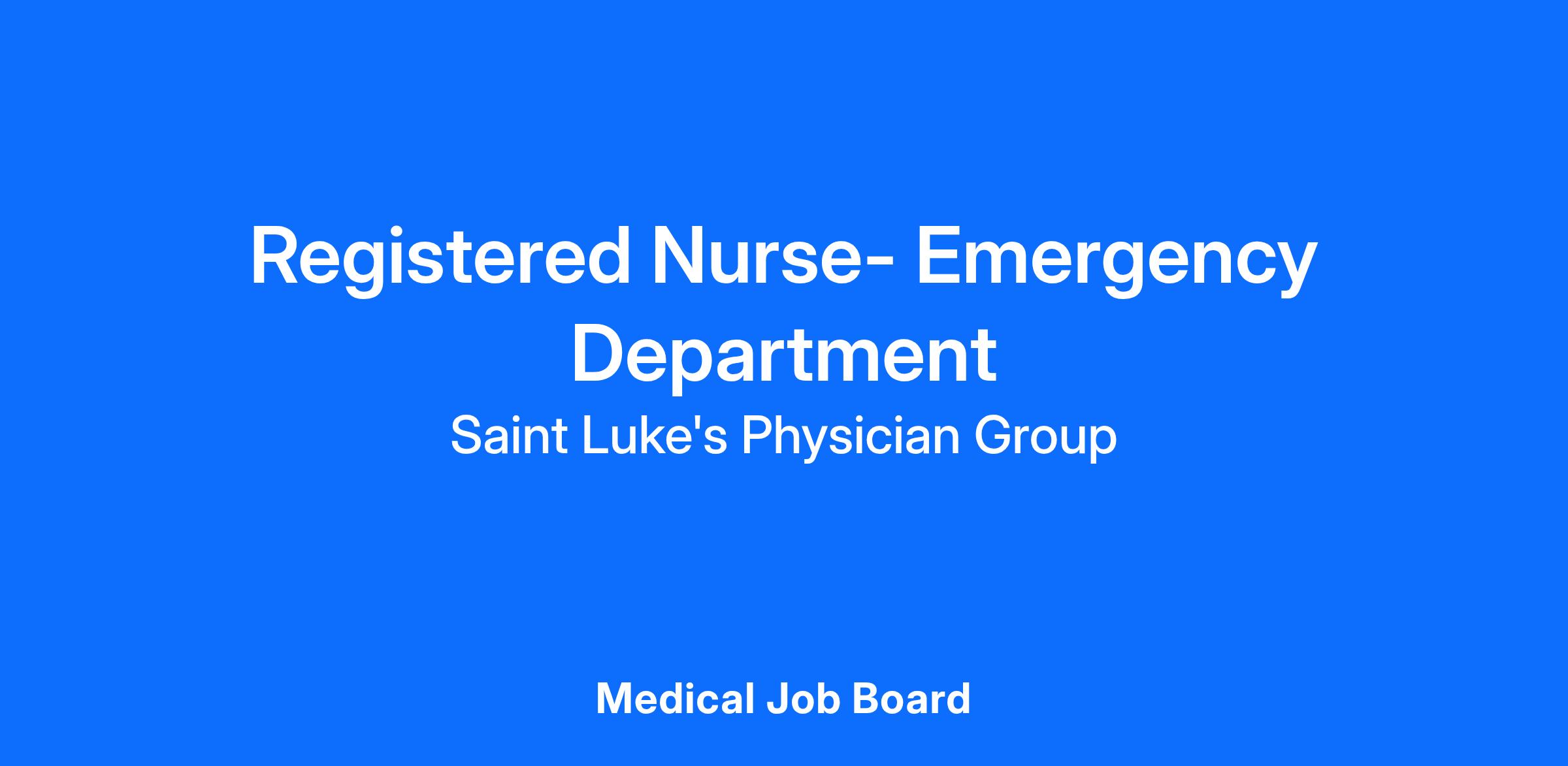 Less than 1 yearBasic Life Support - American Heart Association or Red Cross, Registered Nurse - VariousAssociate DegreeThe best place to get care. The best place to give care. Saint Luke’s 12,000 employees strive toward that vision every day. Our employees are proud to work for the only faith-based, nonprofit, locally owned health system in Kansas City. Joining Saint Luke’s means joining a team of exceptional professionals who strive for excellence in patient care. Do the best work of your career within a highly diverse and inclusive workspace where all voices matter.
