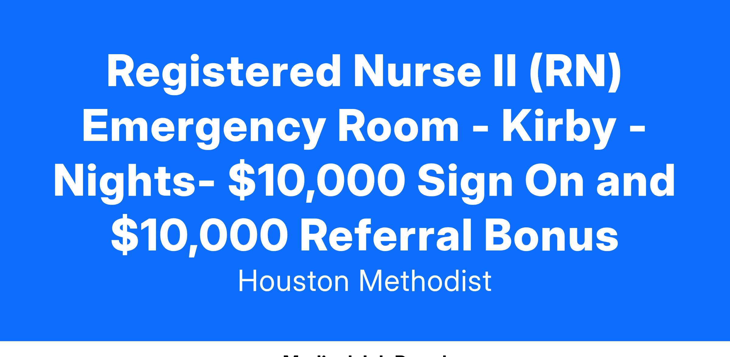 Registered Nurse II (RN) Emergency Room - Kirby - Nights- $10,000 Sign On and $10,000 Referral Bonus
