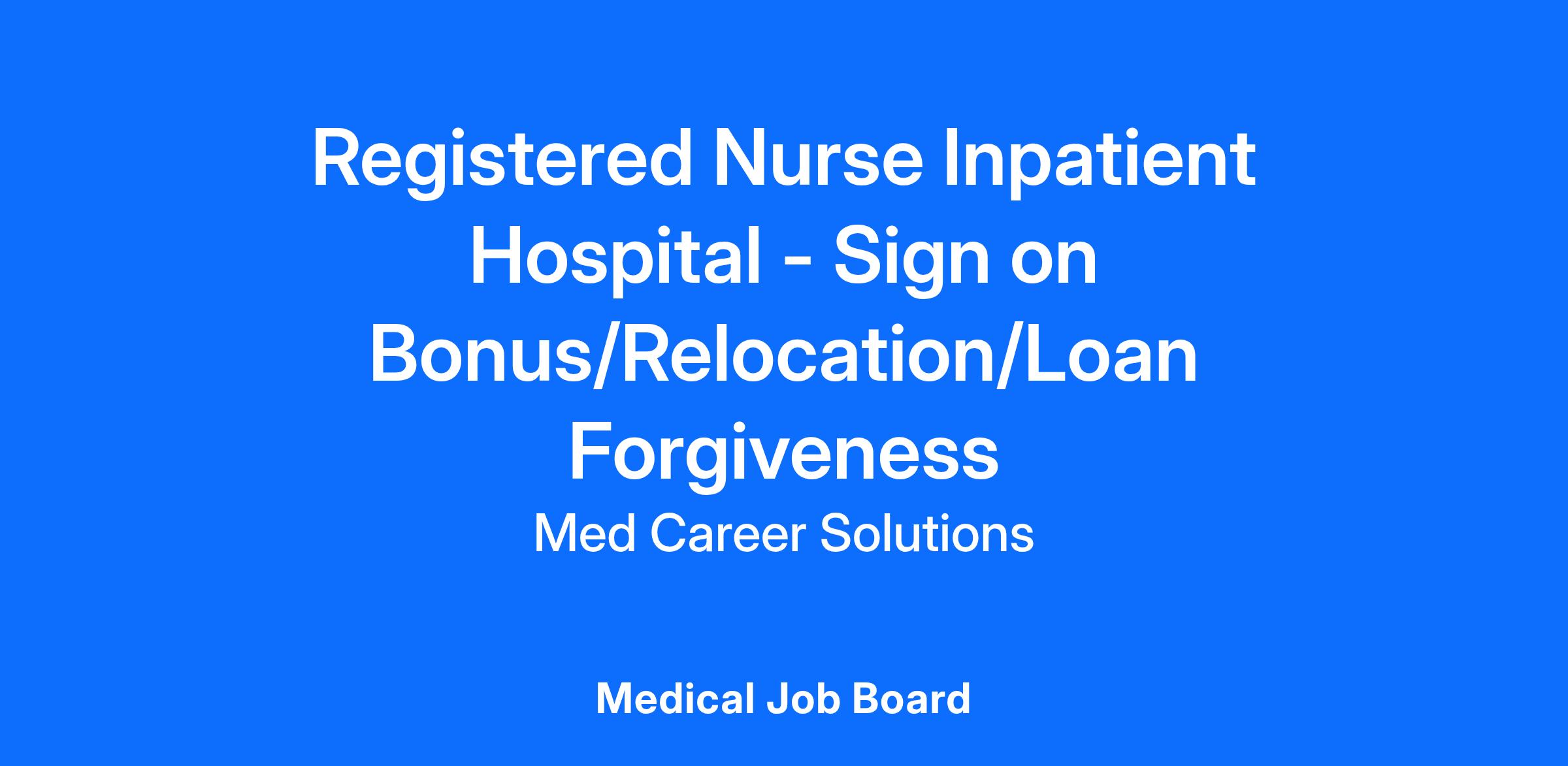 ***SIGN ON BONUS / LOAN FORGIVENESS / RELOCATION ASSISTANCE OFFERED***