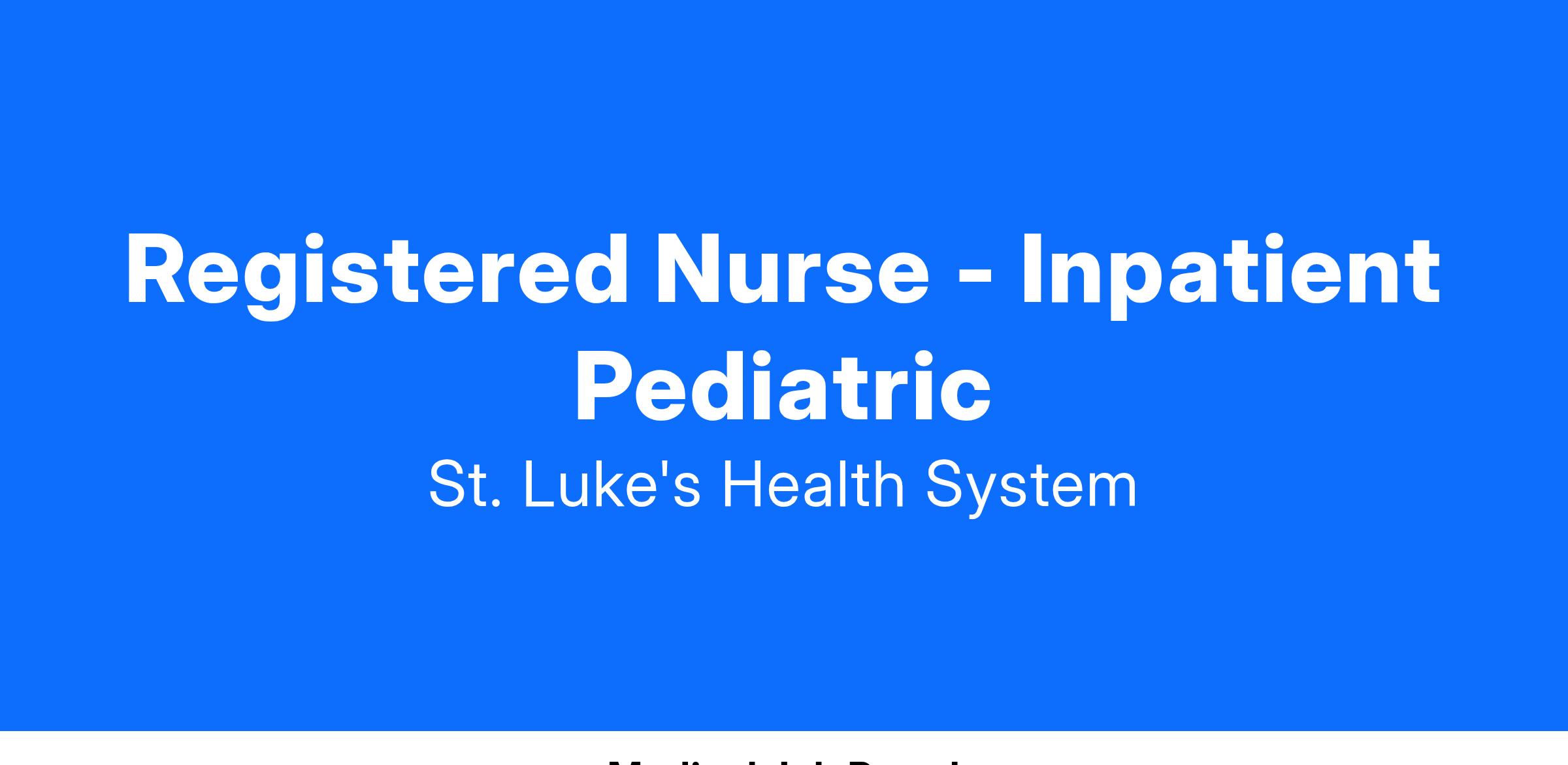 St. Luke’s is an equal opportunity employer and does not discriminate against any person on the basis of race, religion, color, gender, gender identity, sexual orientation, age, national origin, disability, veteran status, or any other status or condition protected by law.