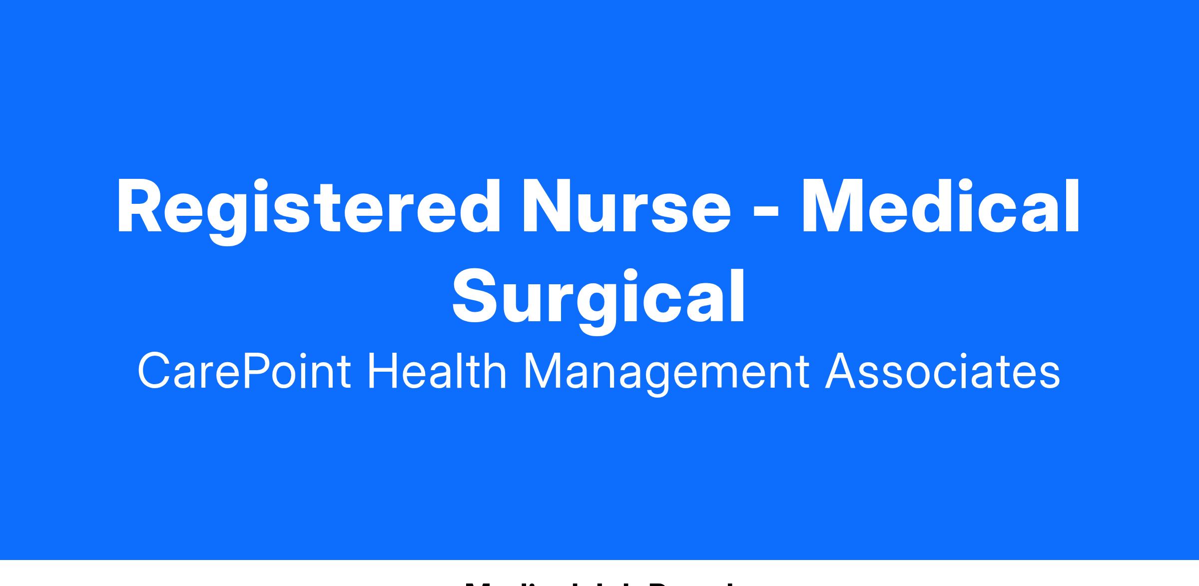 CarePoint Health is an Equal Opportunity Employer encouraging diversity in the workplace. All qualified applicants will receive consideration for employment without regard to race, color, national origin, gender, age, religion, disability, sexual orientation, veteran status, marital status, or any other characteristic protected by law.