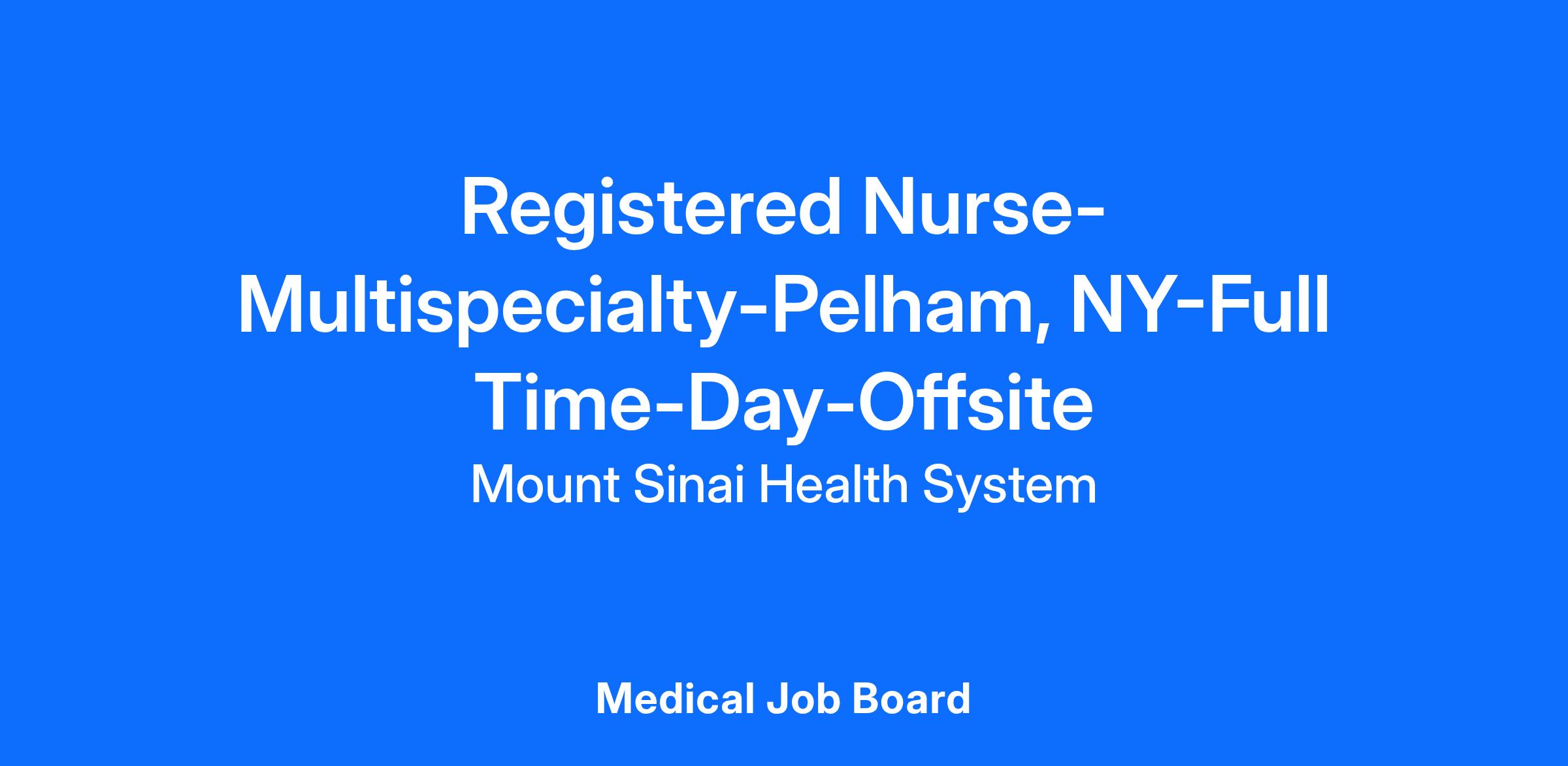 DescriptionRegistered Nurse-Multispecialty-Pelham, NY-Full Time-Day-OffsiteΒ