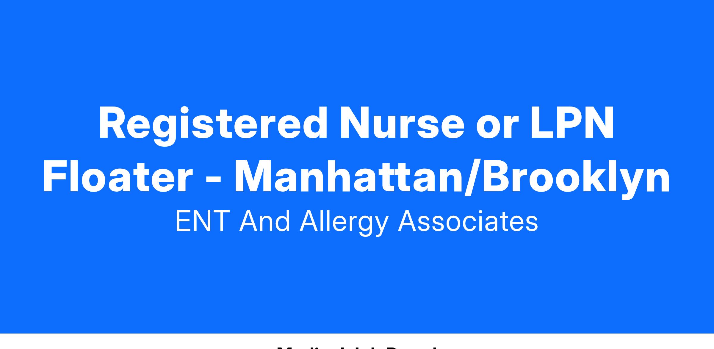 ENT and Allergy Associates, LLP a leading medical practice in New York & New Jersey is seeking a self-driven and patient oriented Allergy Nurse Floater for our Manhattan/Brooklyn to join our dynamic team. The Allergy Nurse Floater role offers an opportunity to work with patients of all ages, encompassing a wide spectrum of care within our vibrant patient community. We offer a supportive work environment aimed at promoting professional growth and teamwork amongst health care providers.