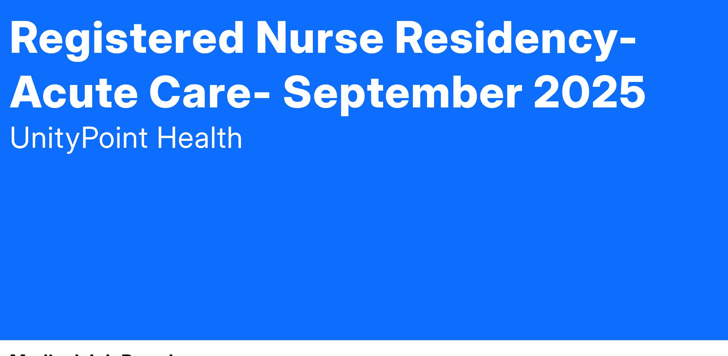 All newly licensed RNs with less than six months of acute RN experience at the time of application are required to participate in the RN Residency program. Newly licensed nurses must apply for the Registered Nurse Residency position.