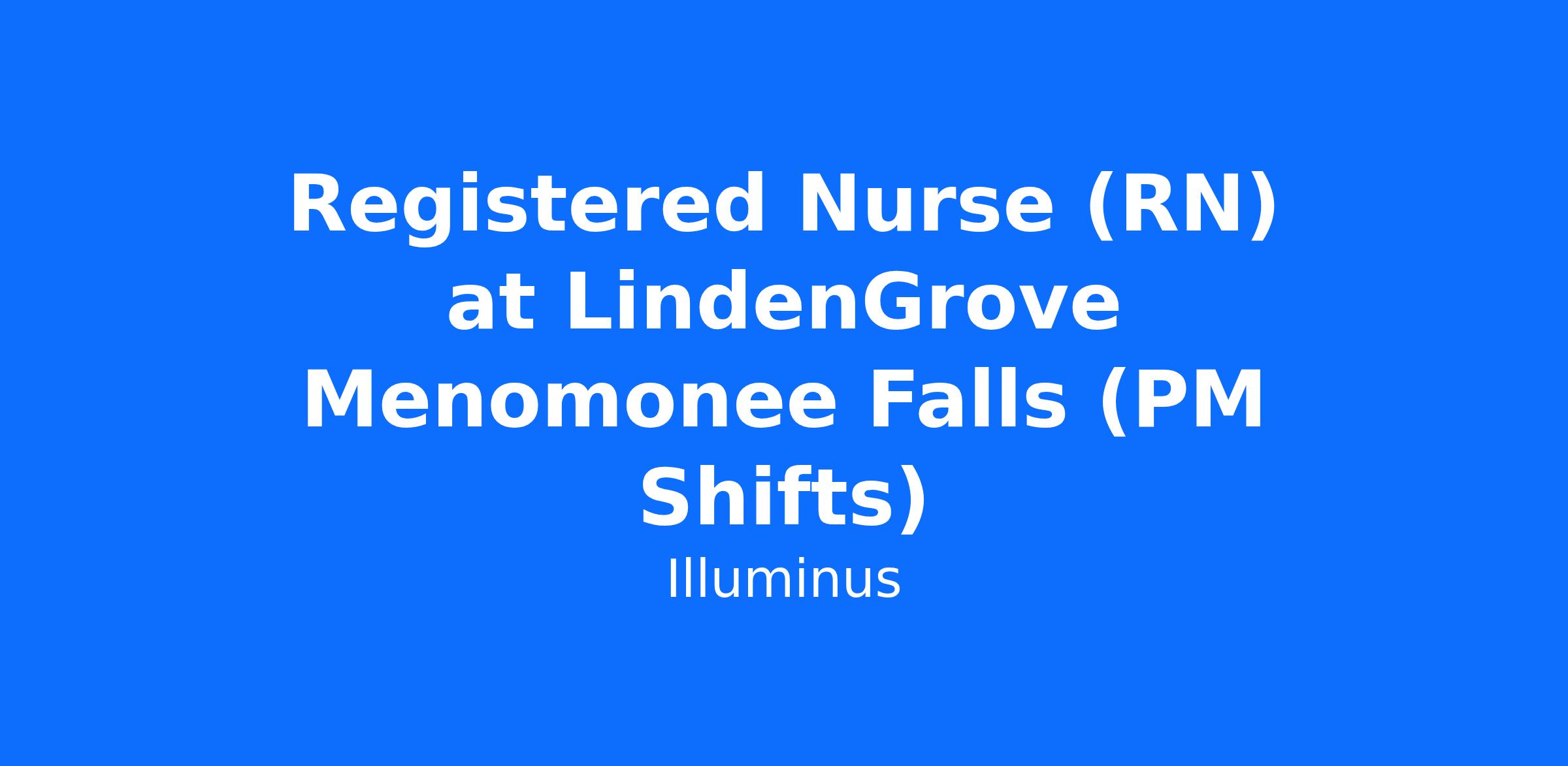 LindenGrove Menomonee Falls , an Illuminus Community, is looking for a Registered Nurse (RN). We offer short-term rehabilitation and long-term skilled nursing care to older adults. Our campus is conveniently located next to Community Memorial Hospital and Froedtert Menomonee Falls Hospital, and focuses on providing outstanding medical rehabilitation services to our community. We are passionate about offering holistic, transformative care and helping those in need rediscover their light within.
