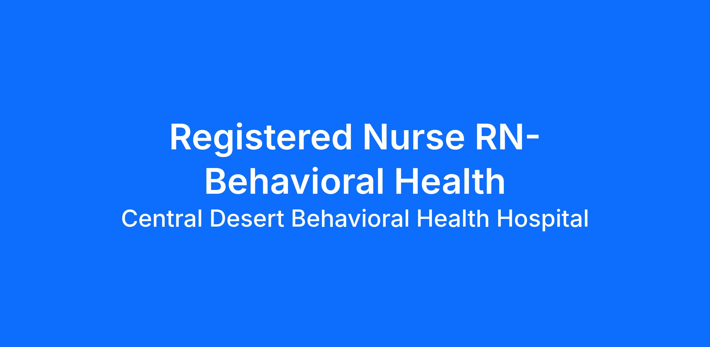 Why Join Central Desert Behavioral Health Hospital as an RN-Registered Nurse-Behavioral Health (RN)?