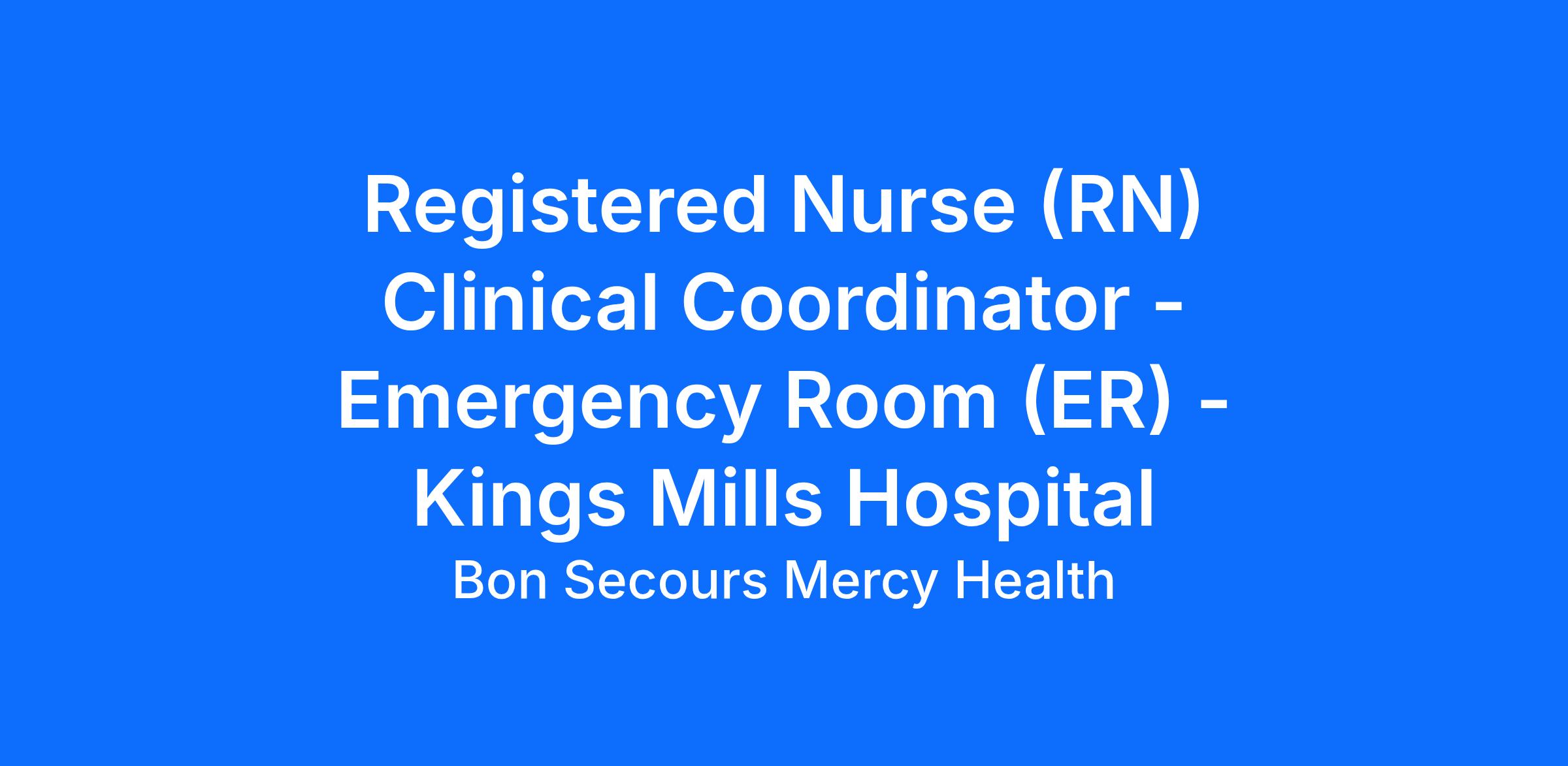 Registered Nurse (RN) Clinical Coordinator - Emergency Room (ER) - Kings Mills Hospital