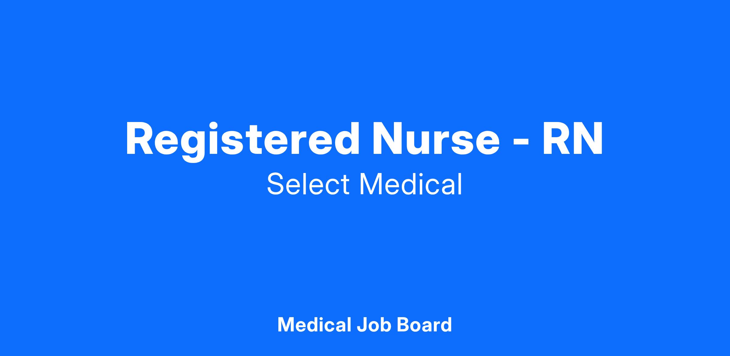 Select Medical is committed to having a workforce that reflects diversity at all levels and is an equal opportunity employer. Qualified applicants are considered for employment, and employees are treated during employment without regard to race, color, religion, national origin, citizenship, age, sex, sexual orientation, gender identity, marital status, ancestry, physical or mental disability, veteran status, or any other characteristic protected under applicable law.