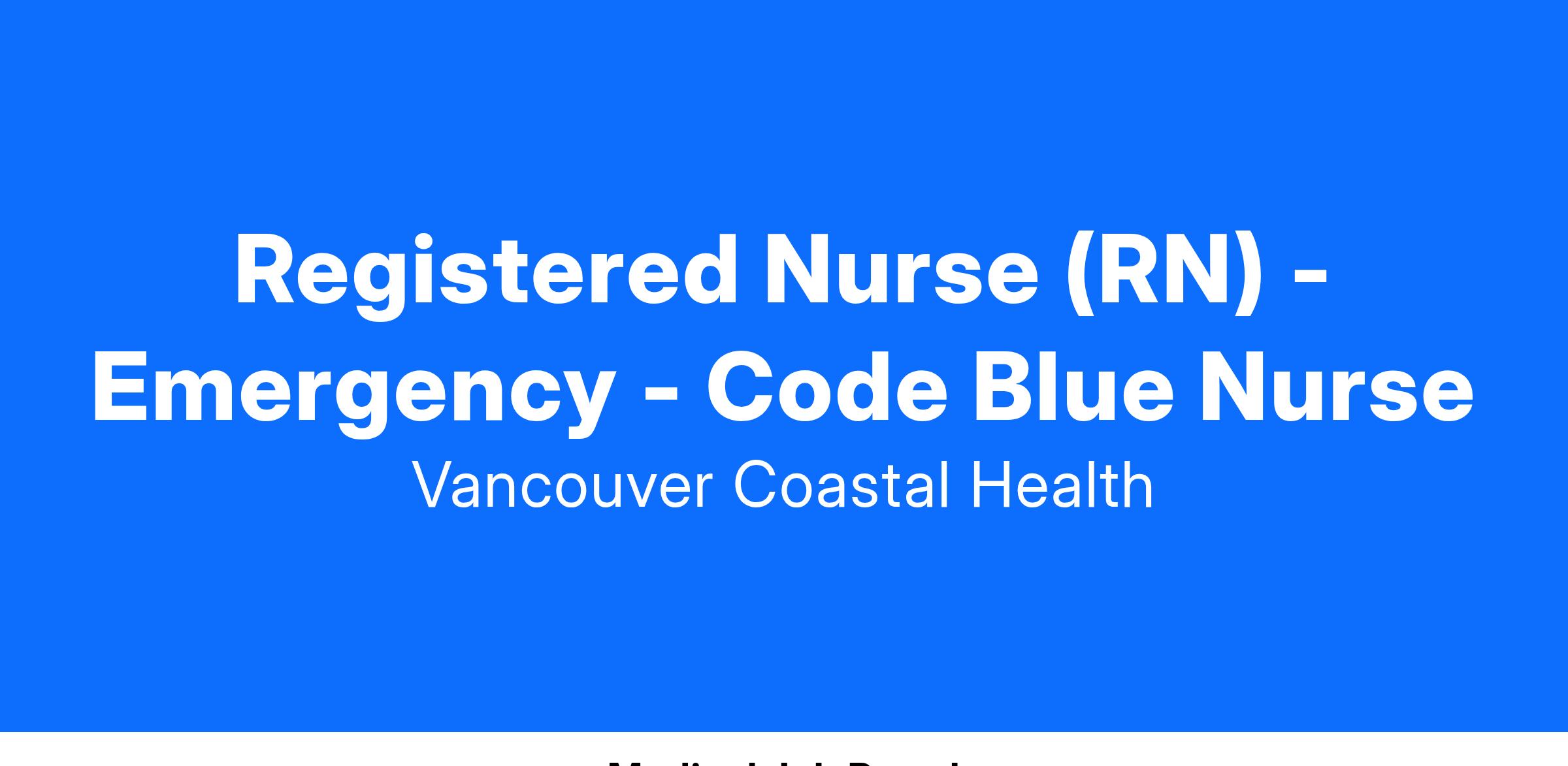 Come work as a Registered Nurse in Emergency with Vancouver Coastal Health (VCH)!