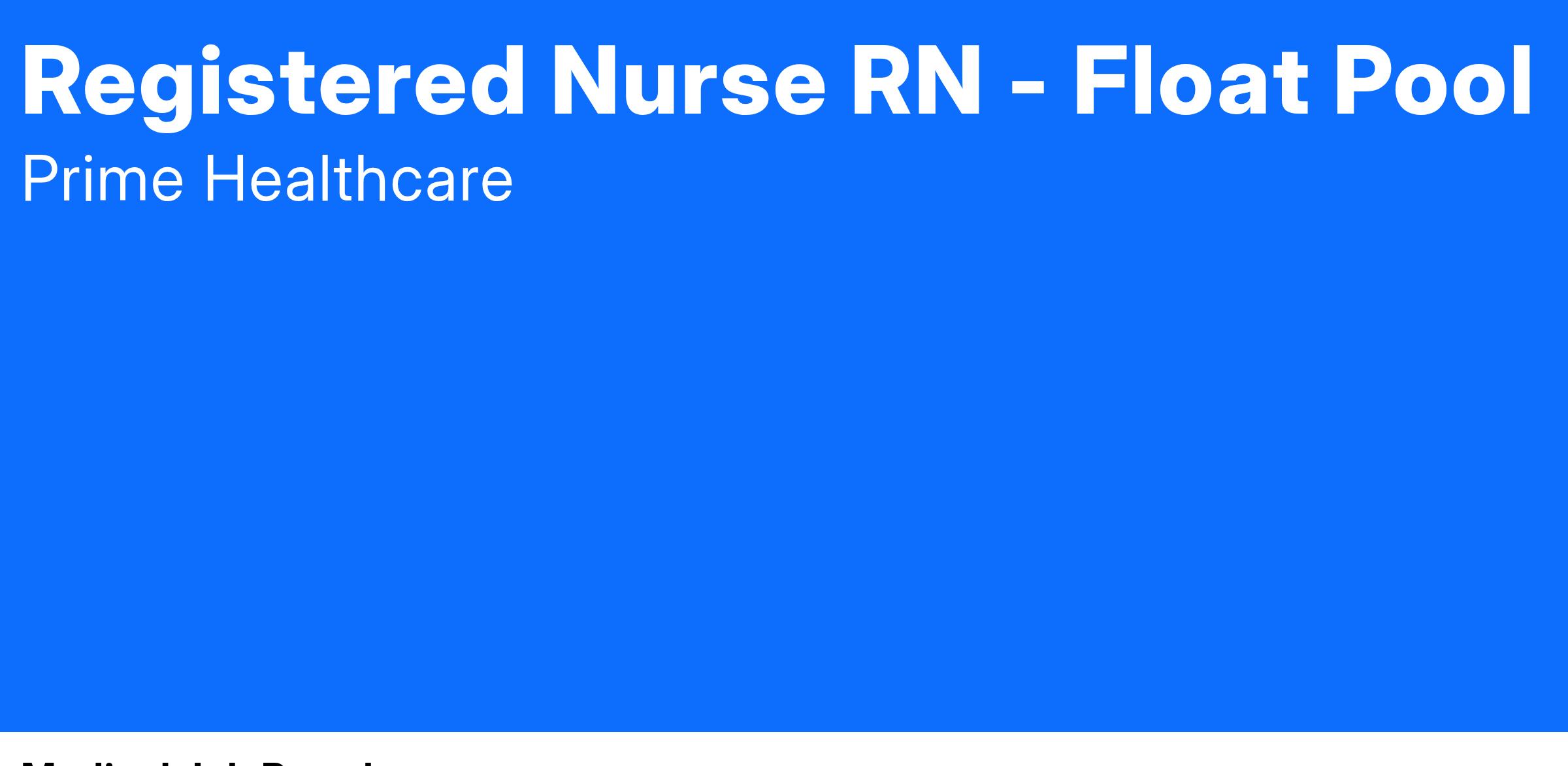 As a RN in our Float Pool you will experience the multiple units and specialities that Resurrection has to offer. Your responsibilities will include but are not limited to: