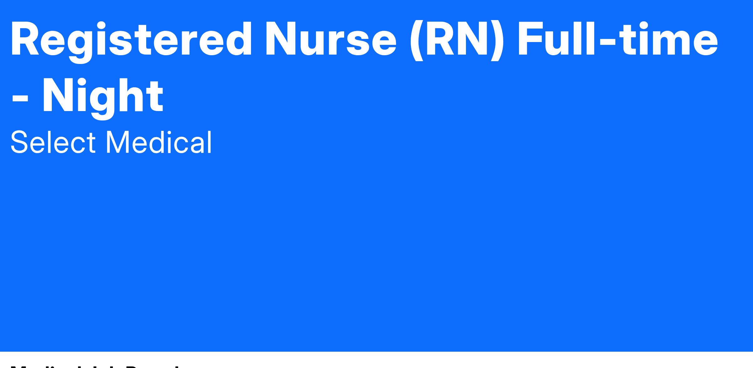 Select Medical is committed to having a workforce that reflects diversity at all levels and is an equal opportunity employer. Qualified applicants are considered for employment, and employees are treated during employment without regard to race, color, religion, national origin, citizenship, age, sex, sexual orientation, gender identity, marital status, ancestry, physical or mental disability, veteran status, or any other characteristic protected under applicable law.