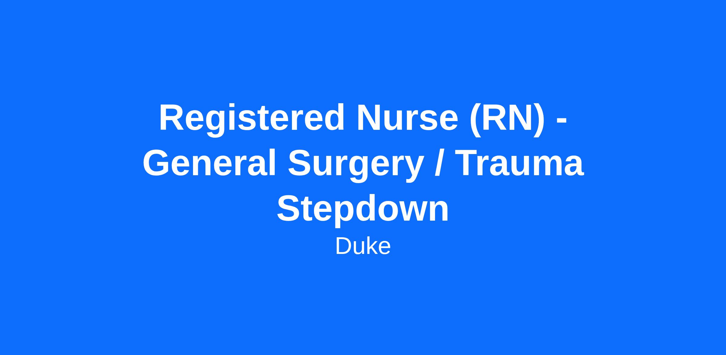 The General Surgery & Vascular Trauma Stepdown Unit at Duke strives to provide exceptional care to acutely ill patients. We are a 32 bed stepdown unit with a patient population consisting primarily of abdominal and vascular surgeries, abdominal oncology as well as a variety of trauma patients. Our unit offers an opportunity to cultivate critical thinking in a fast-paced environment that promotes team building and fosters learning. The RNs in our unit aim to provide the highest quality care to our patient population while serving as patient advocates.