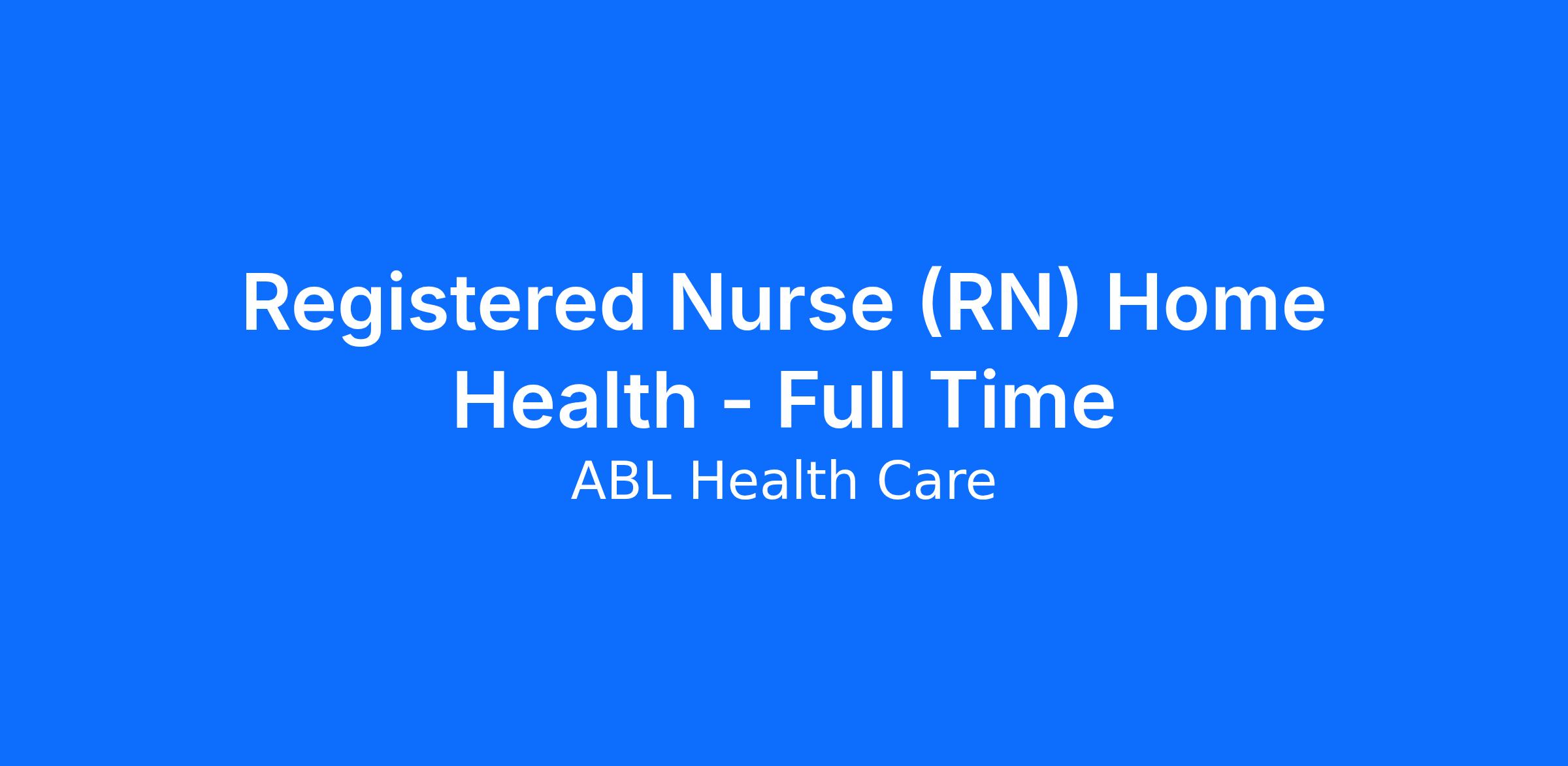 For many years, ABL Healthcare and ABL Hospice have been trusted providers of home healthcare and hospice services, dedicated to delivering compassionate, personalized care that prioritizes comfort, dignity, and support for both patients and their families - ensuring they receive appropriate care at every stage of their journey. We are currently seeking a compassionate, organized, and team-oriented individual to join our Home Health team as a Full-Time Registered Nurse (RN) in Oakland, CA.