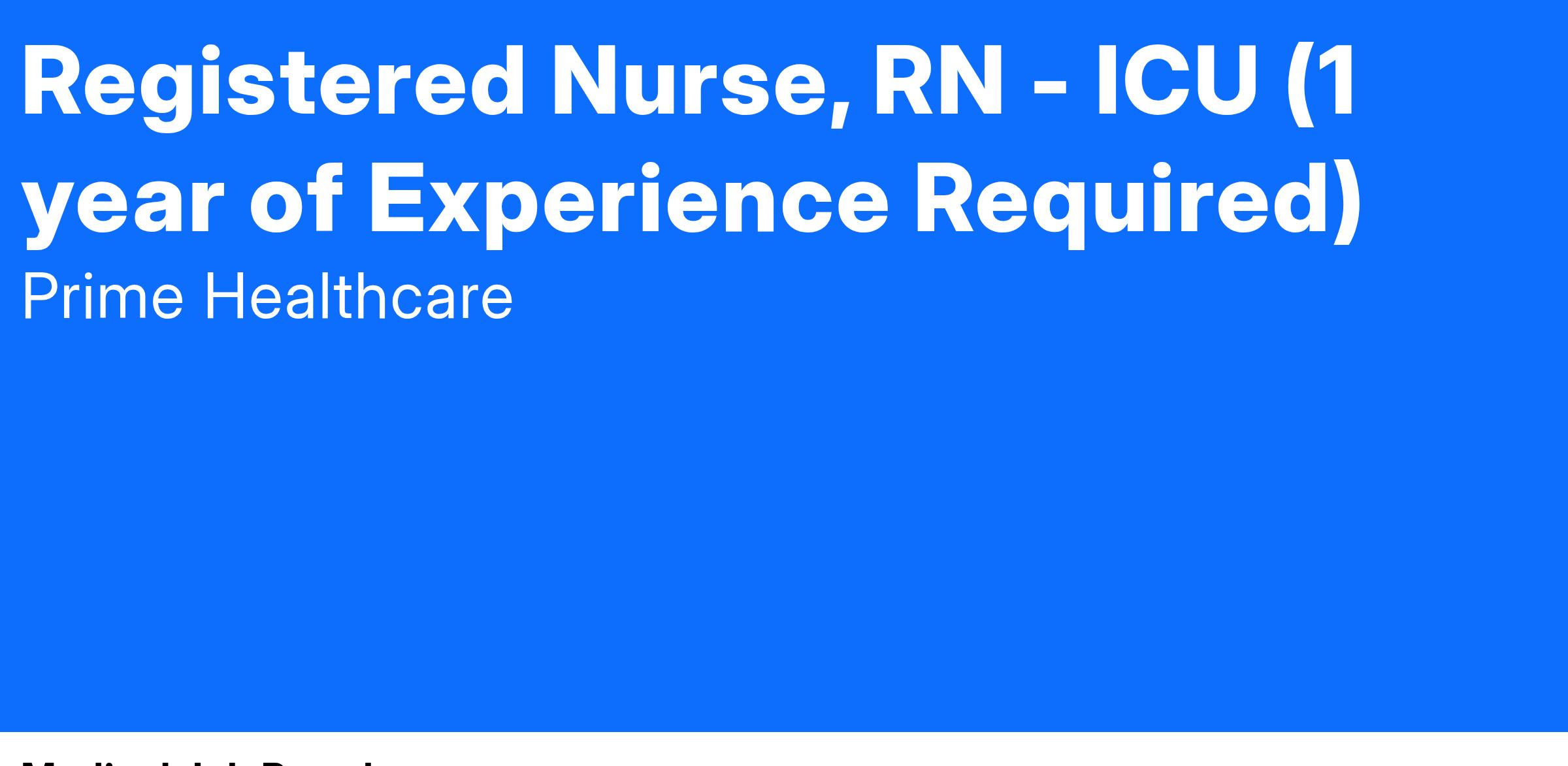 7. Critical Care RN (CCRN) Certification preferred.