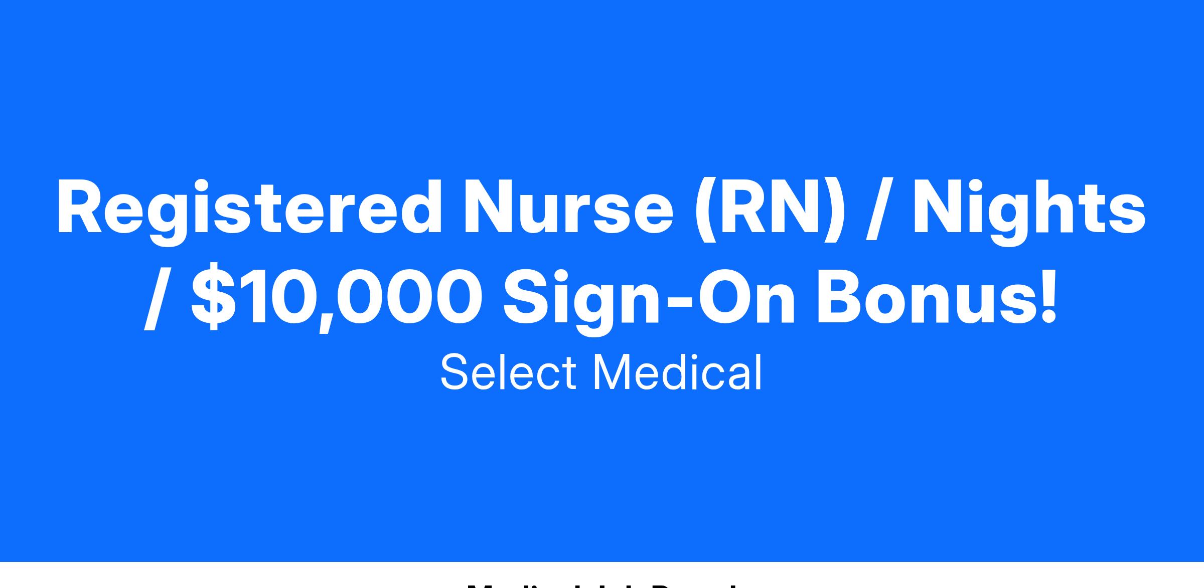 Select Medical is committed to having a workforce that reflects diversity at all levels and is an equal opportunity employer. Qualified applicants are considered for employment, and employees are treated during employment without regard to race, color, religion, national origin, citizenship, age, sex, sexual orientation, gender identity, marital status, ancestry, physical or mental disability, veteran status, or any other characteristic protected under applicable law.
