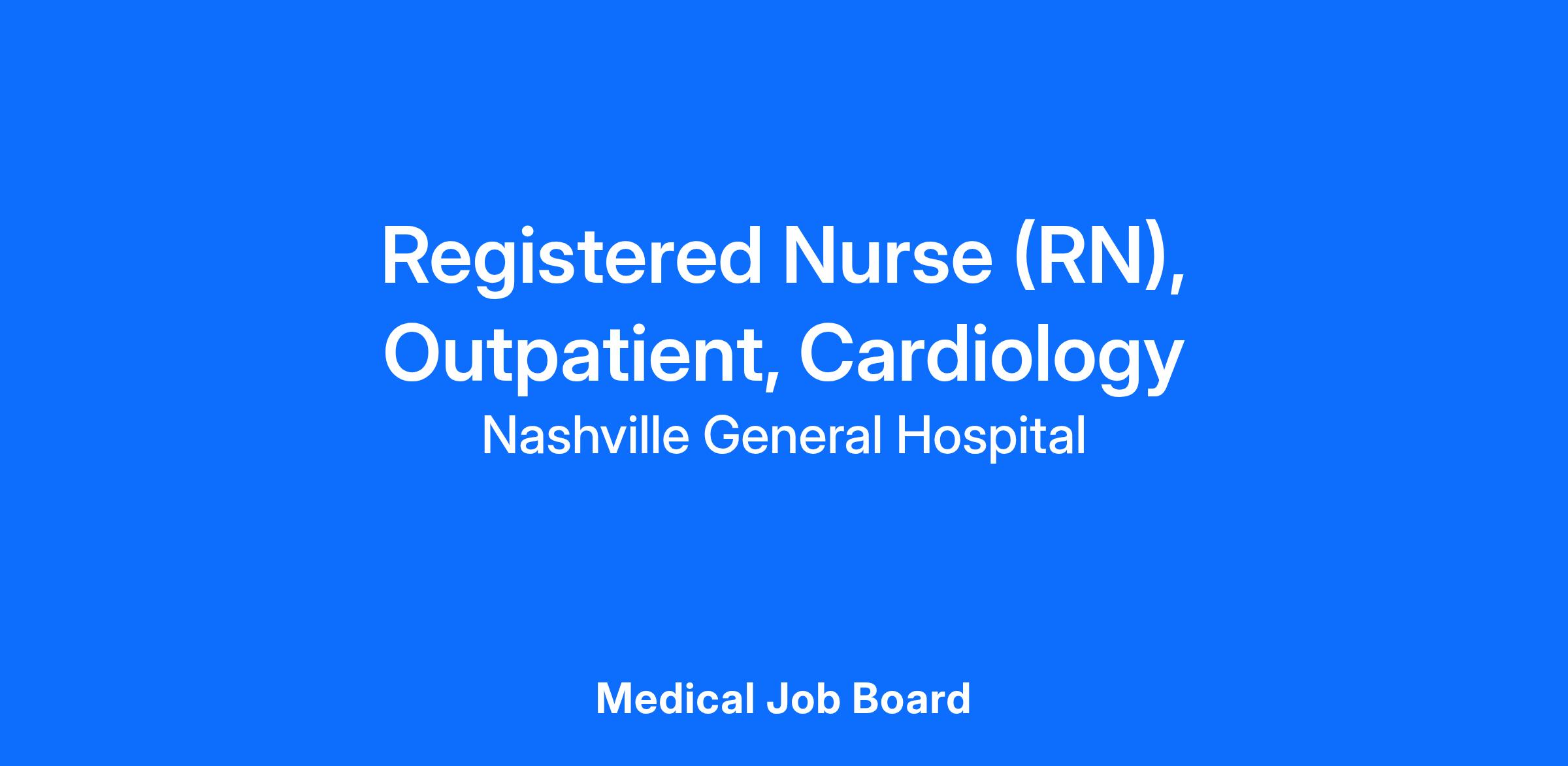 Nashville General Hospital is hiring a Full Time Registered Nurse (RN) for our Cardiology Clinic team in Nashville, Tennessee.