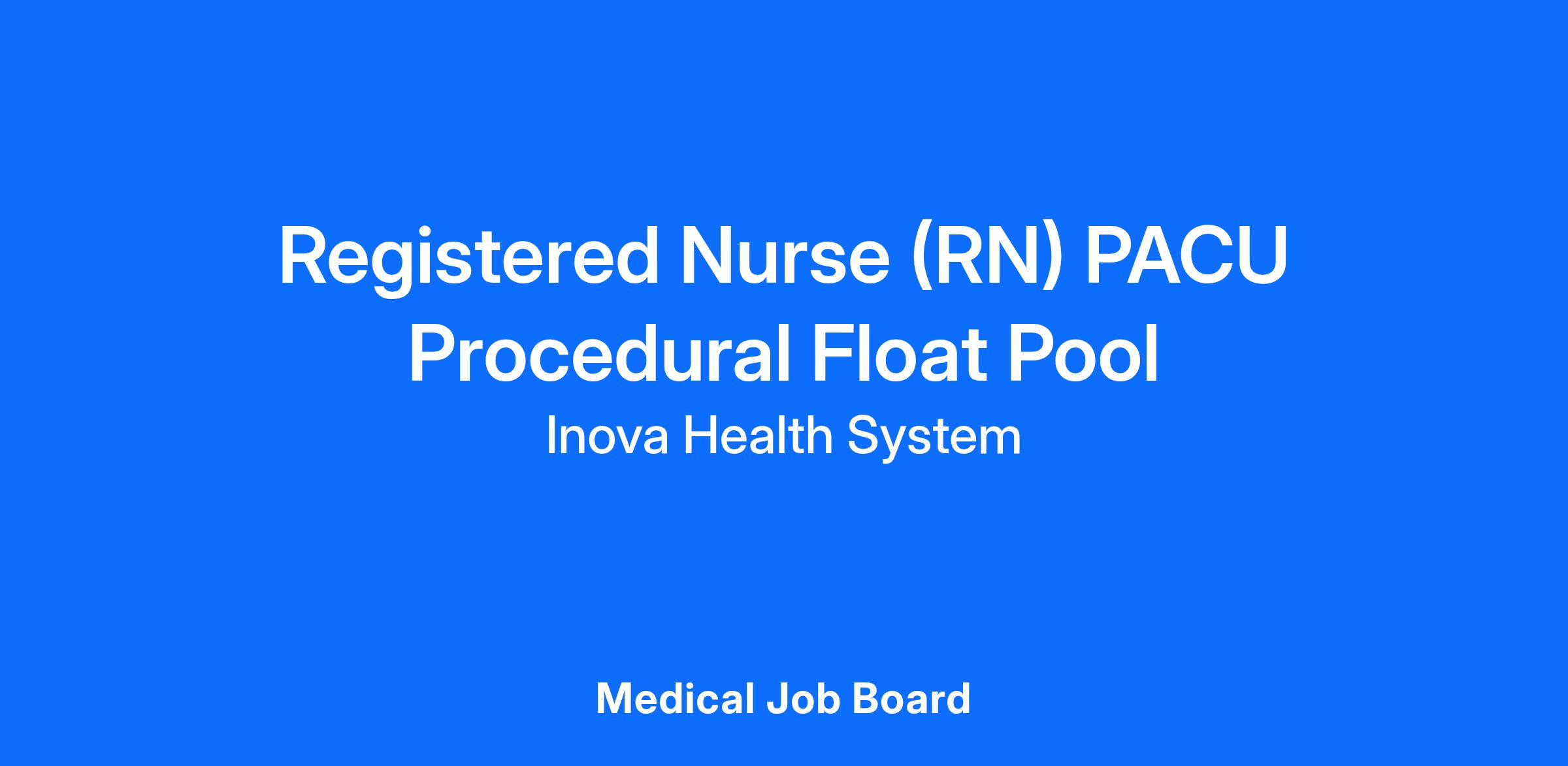 DescriptionInova Fairfax Hospital is looking for a dedicated Registered Nurse (RN) to join the PACU Procedural Float Pool team. This role will be full-time, day shift; days vary, 7AM to 7.30PM