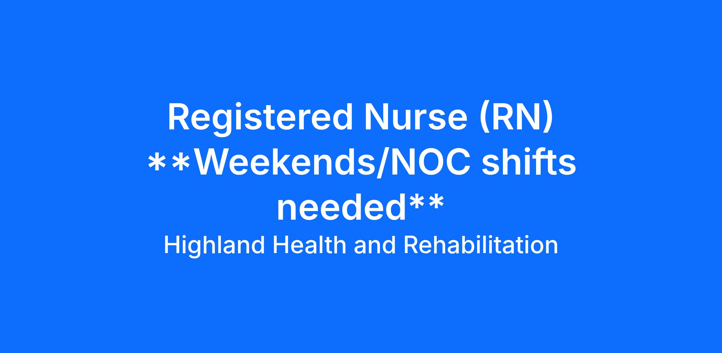 If you’re a dedicated and compassionate Registered Nurse (RN) who’s ready to help patients achieve their healthcare goals, we’d love to hear from you! Apply today and take the next step in your nursing career with Highland Health & Rehabilitation.