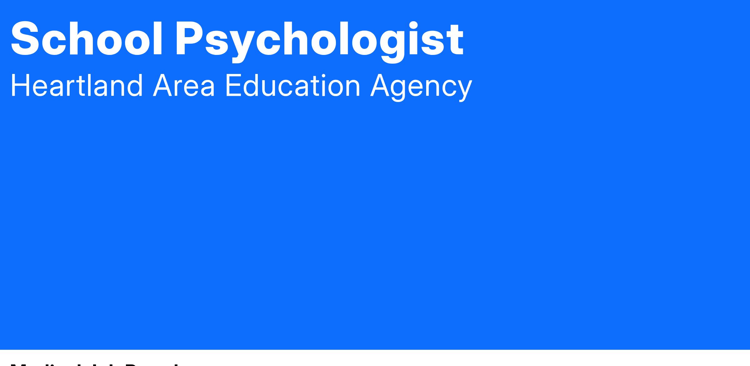 Qualified applicants must be appropriately licensed/certified by the Iowa Board of Educational Examiners, having a Professional Service License (or have the ability to obtain a license) and have a post-master's level of professional training in an approved school psychology training program with institutional recommendations. Prefer applicants who have a specialist degree or master's plus 30 hours and a desire to work within a RtI/MTSS model. Bilingual abilities are a plus, but not required. Qualified candidates should have an understanding of function of behavior and best practices in instruction for behavior.