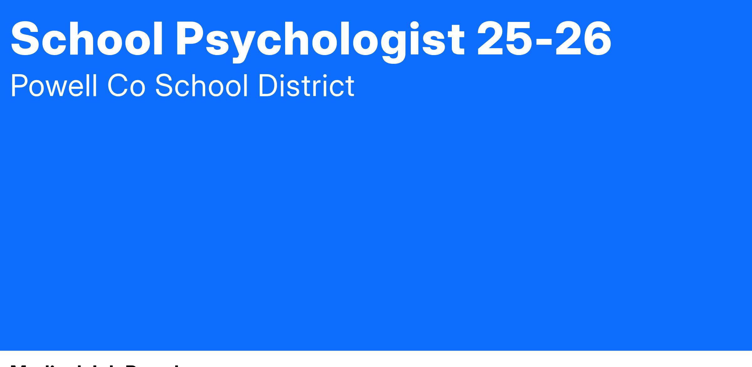 BASIC FUNCTION: Conduct psychological assessments of students, and serve as the primary evaluator for diagnosis of disability and eligibility determination for students who have been referred for specialized instruction and related services.