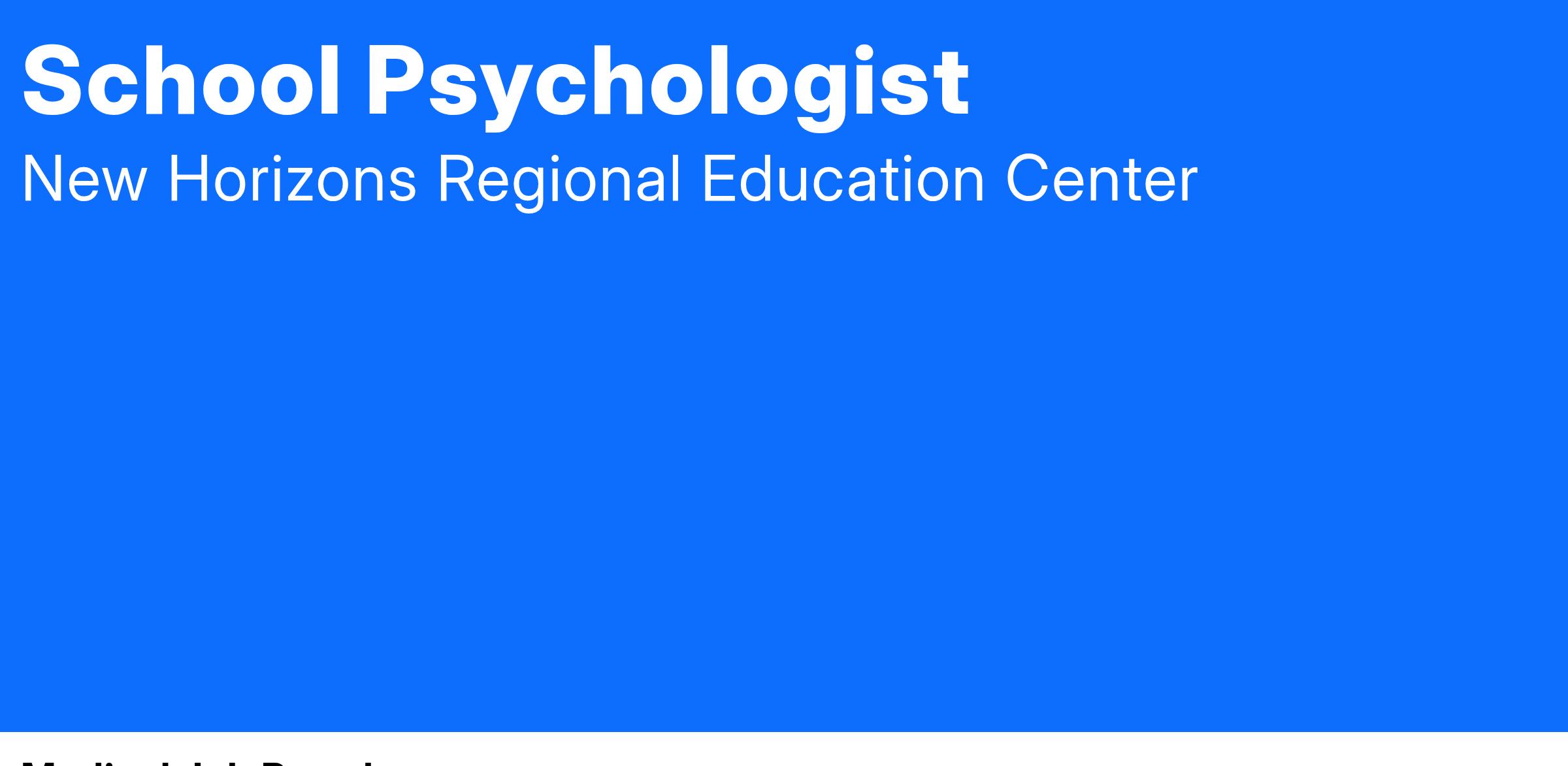 Must possess a Master’s degree and be eligible for a Virginia License as a school psychologist. Pupil Personnel Services Certificate is desired. Must have two years of successful experience in the field. Experience with special needs children desired.