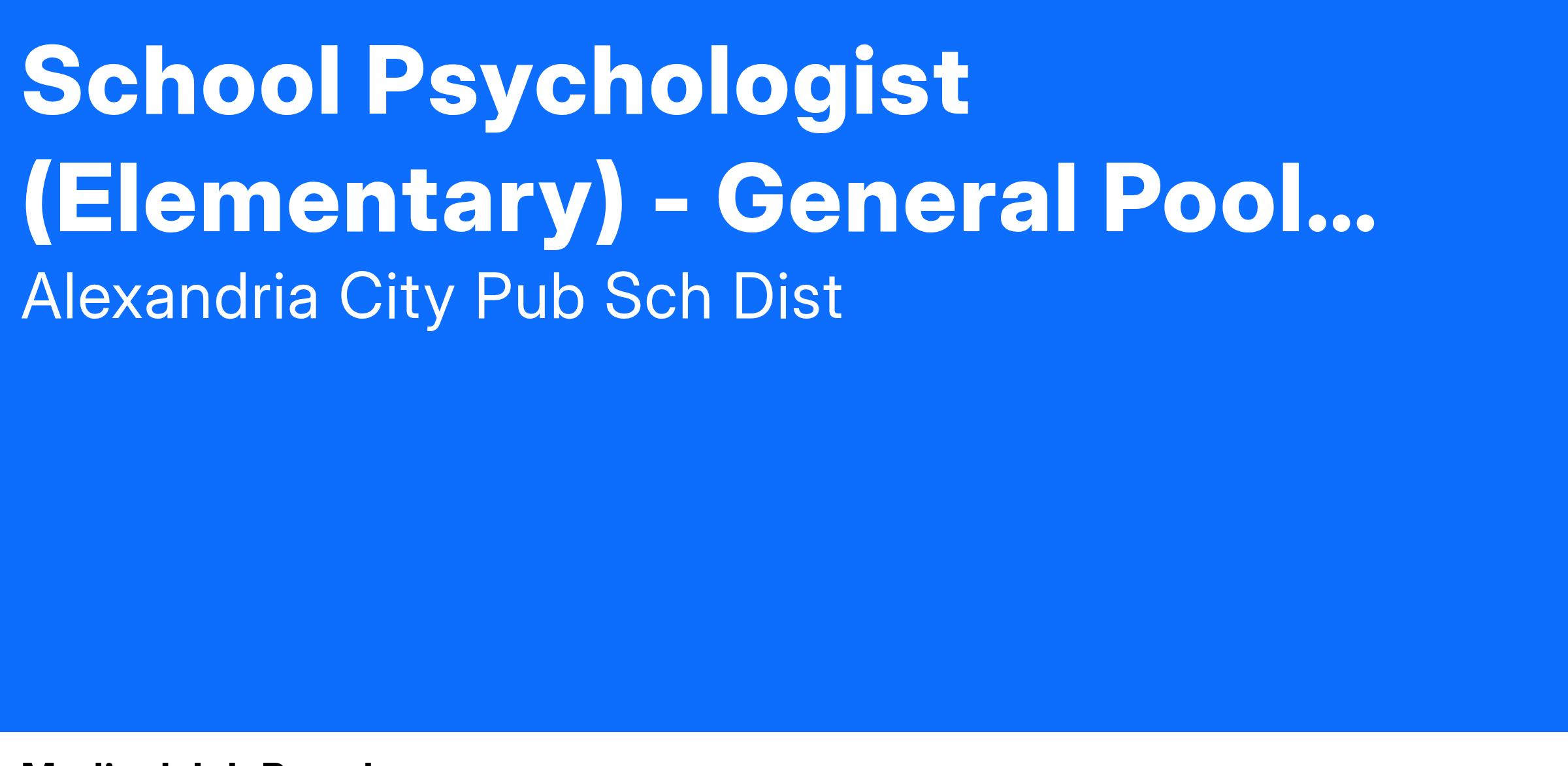 - Certificates & Licenses:Β Valid Virginia Department of Education license with an endorsement in School Psychology, or eligibility to obtain one.