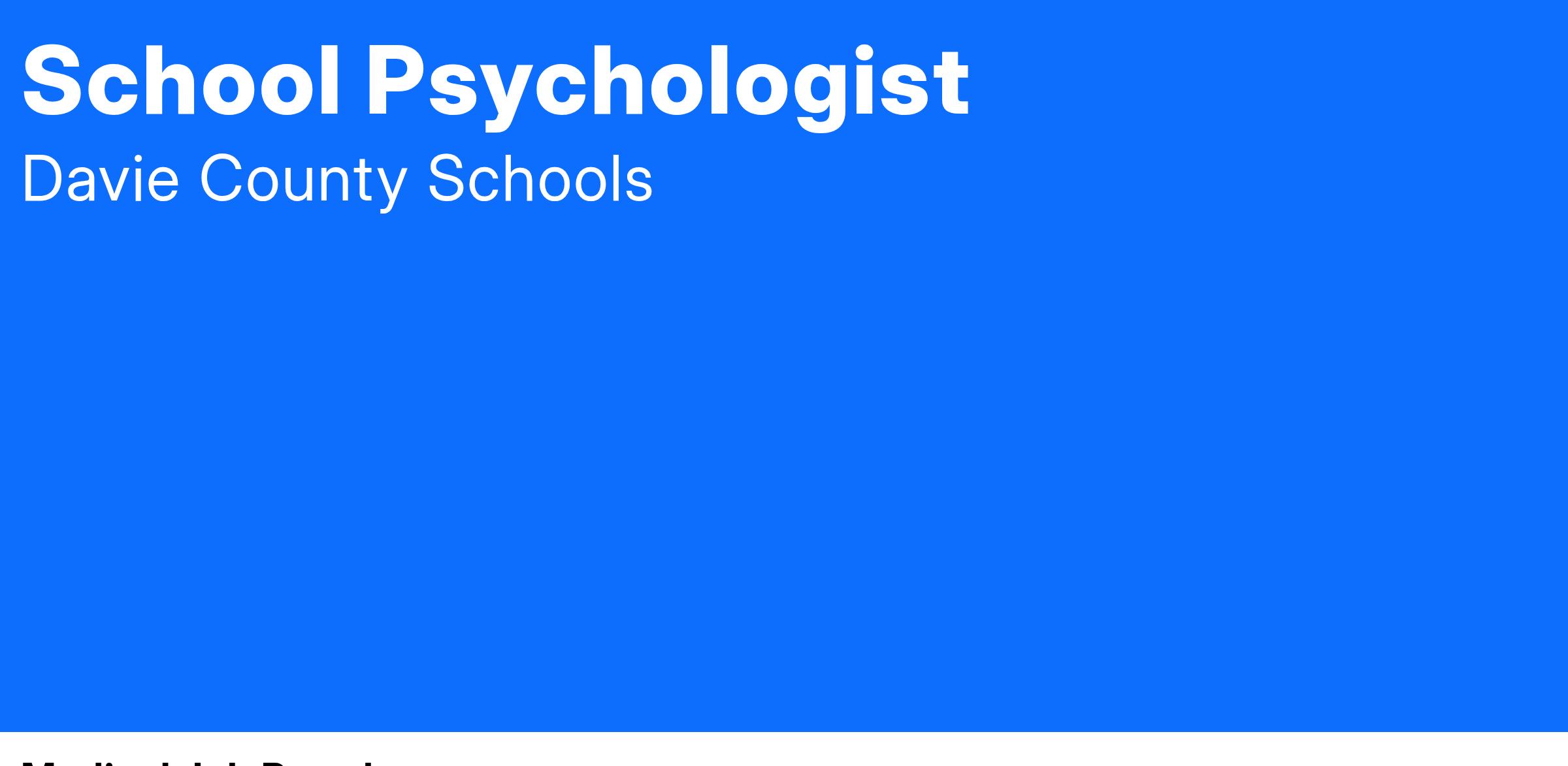 Must be certified as a school psychologist by the State of North Carolina. Must possess a valid North Carolina driver's license.