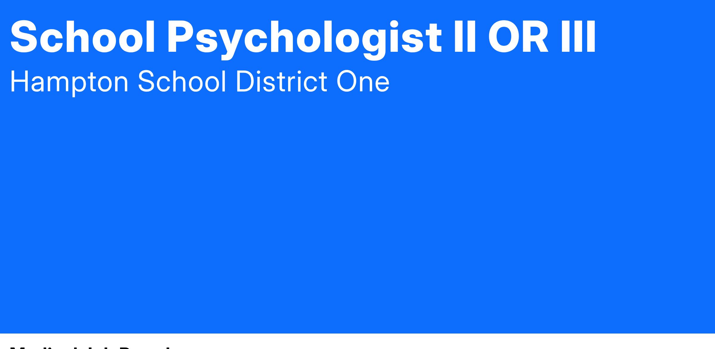 Qualification Requirements:⢠South Carolina School Psychologist Certification
